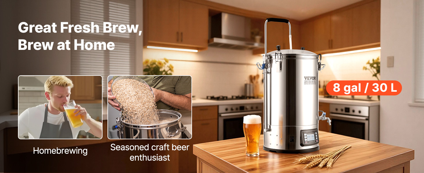 The intelligent control panel combines various functions to simplify your brewing work. You can freely set the temperature, power, and time. Other features like auto/manual mode selection, recipe memory, and hops-adding reminder are also equipped.
