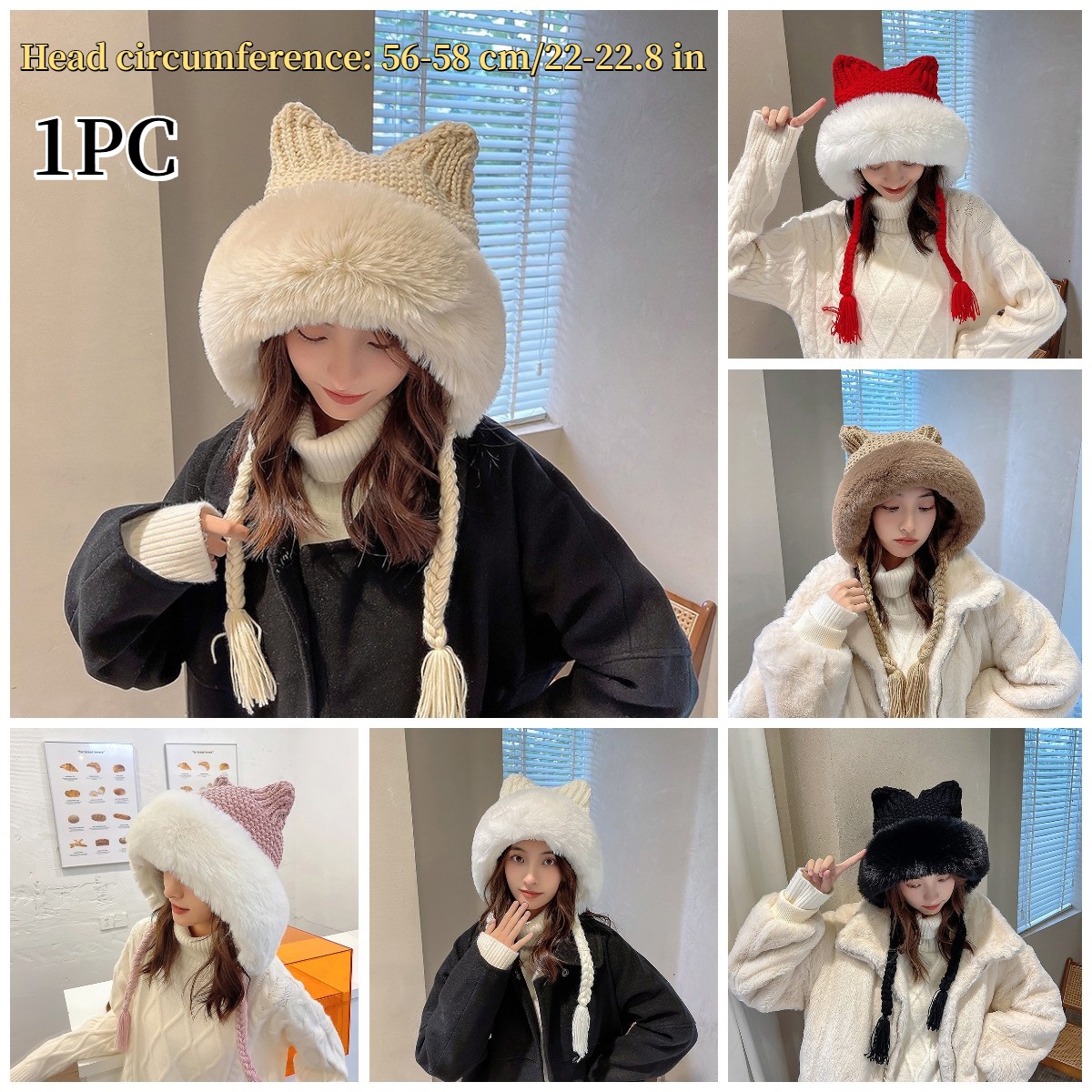Lady Winter Faux Fur Knitted Hats Earmuffs Beanie Hats Warm Outdoor Ski Cap Cute
