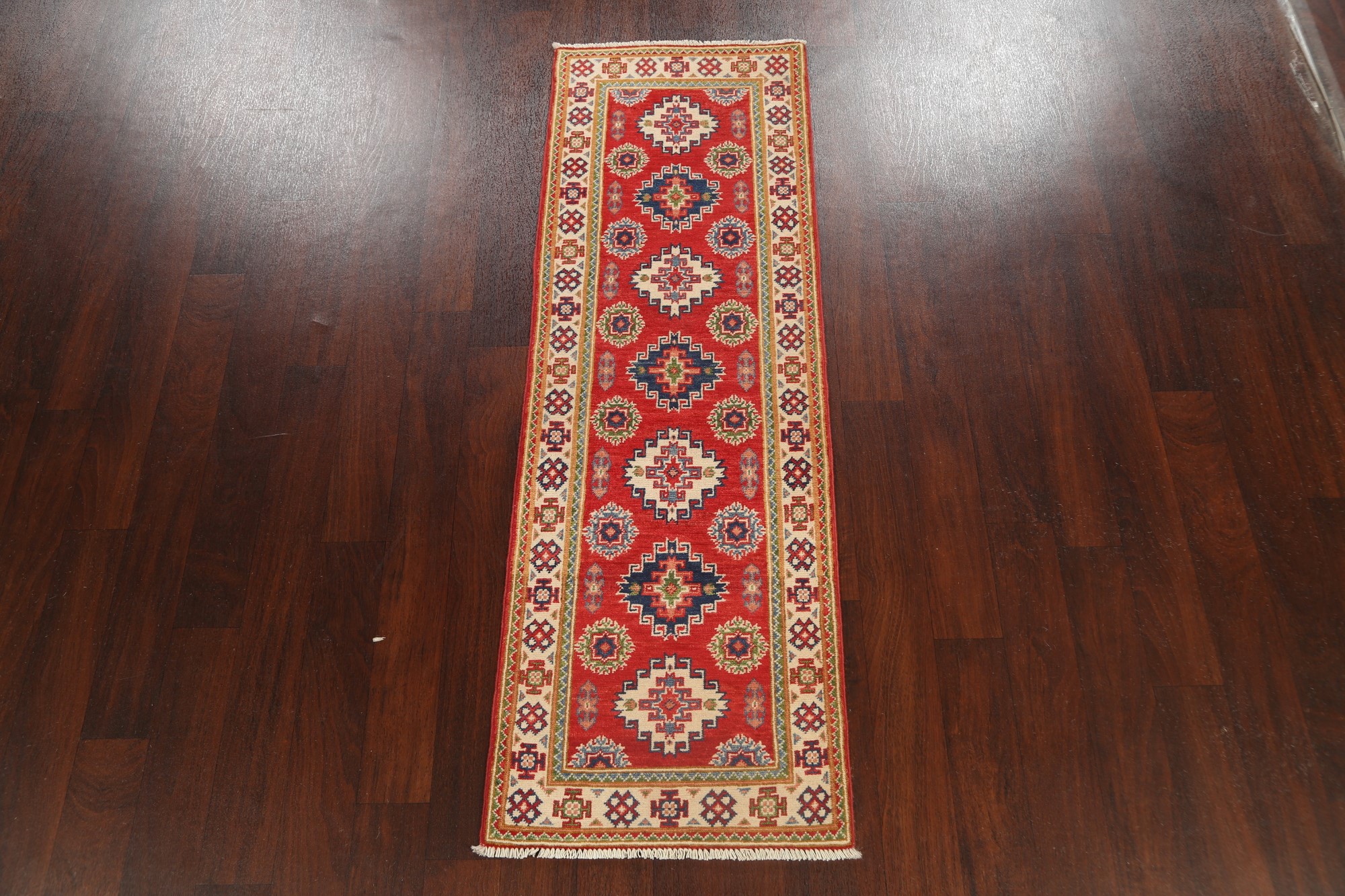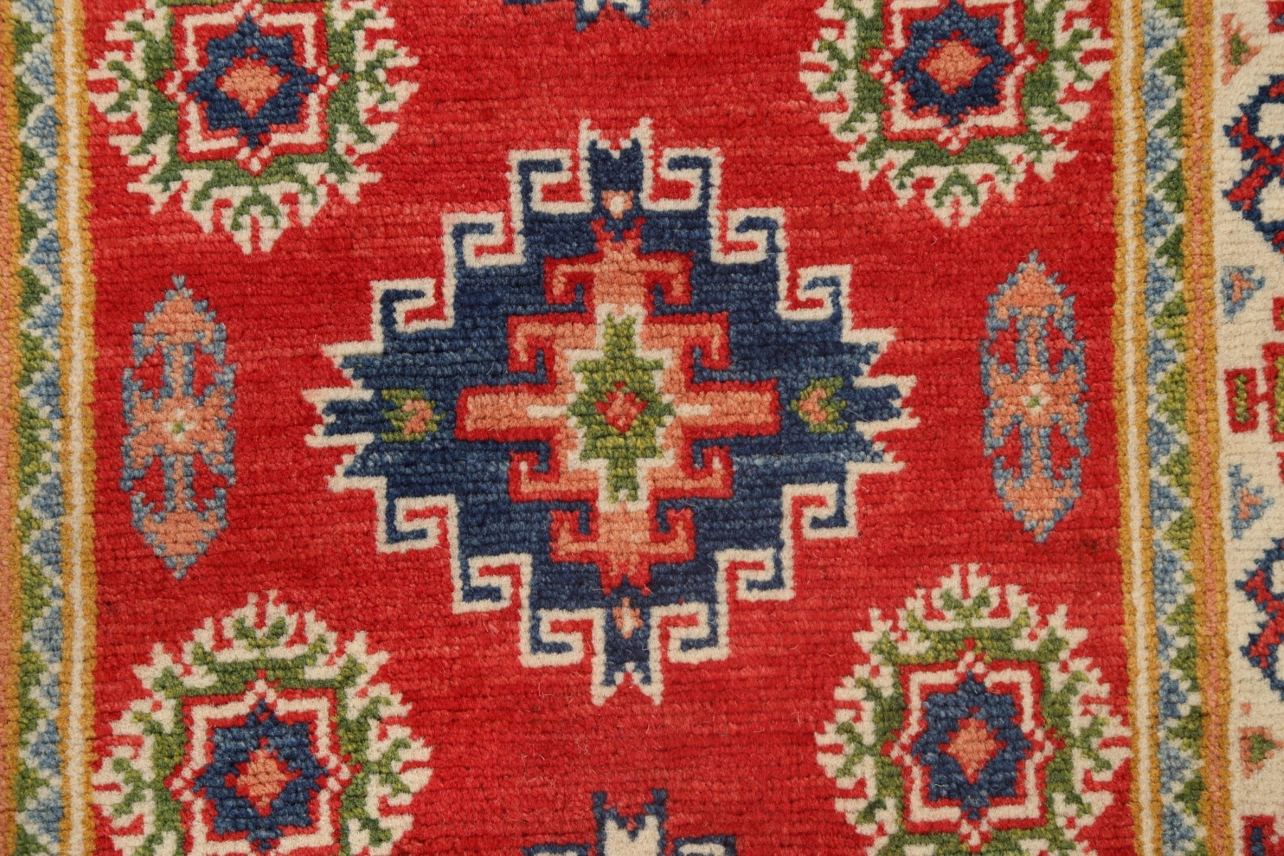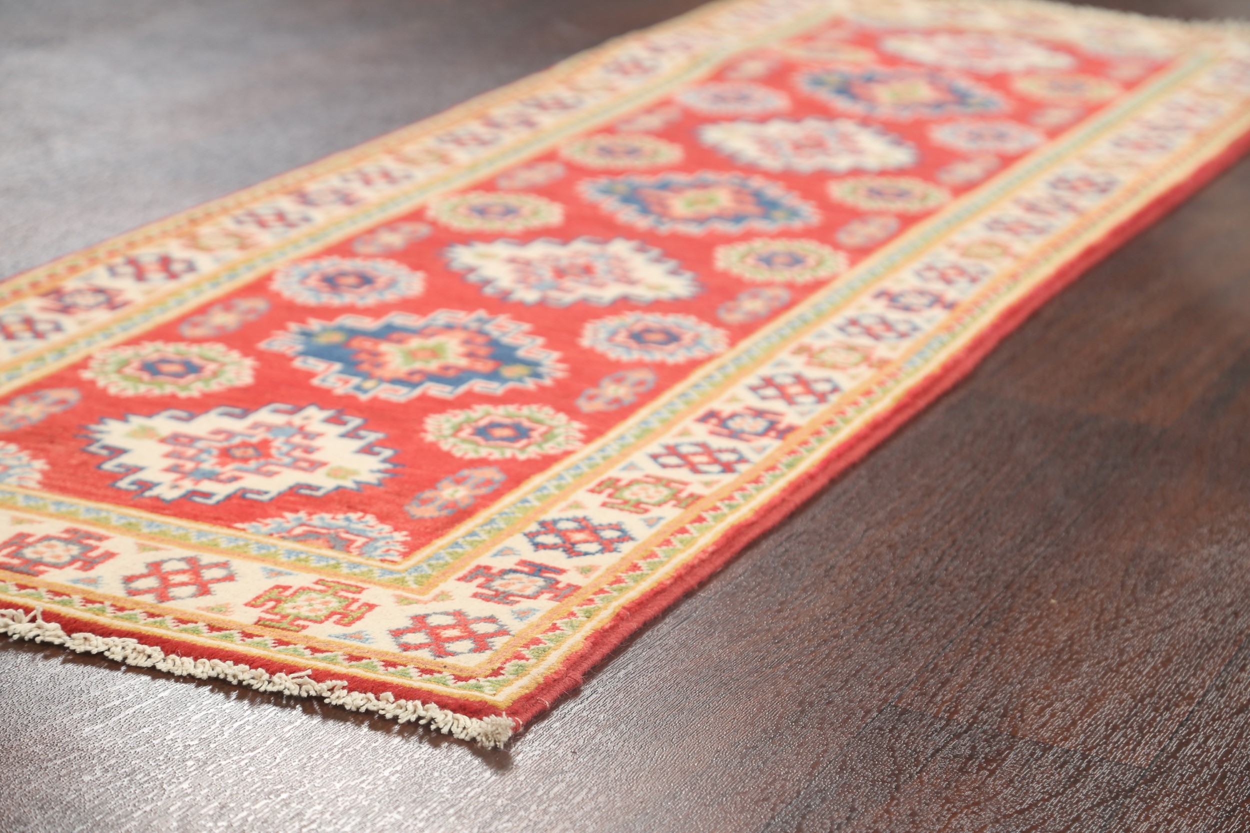 Red Kazak Oriental Runner Rug 2x6 Hand-knotted Wool Geometric Pattern Carpet