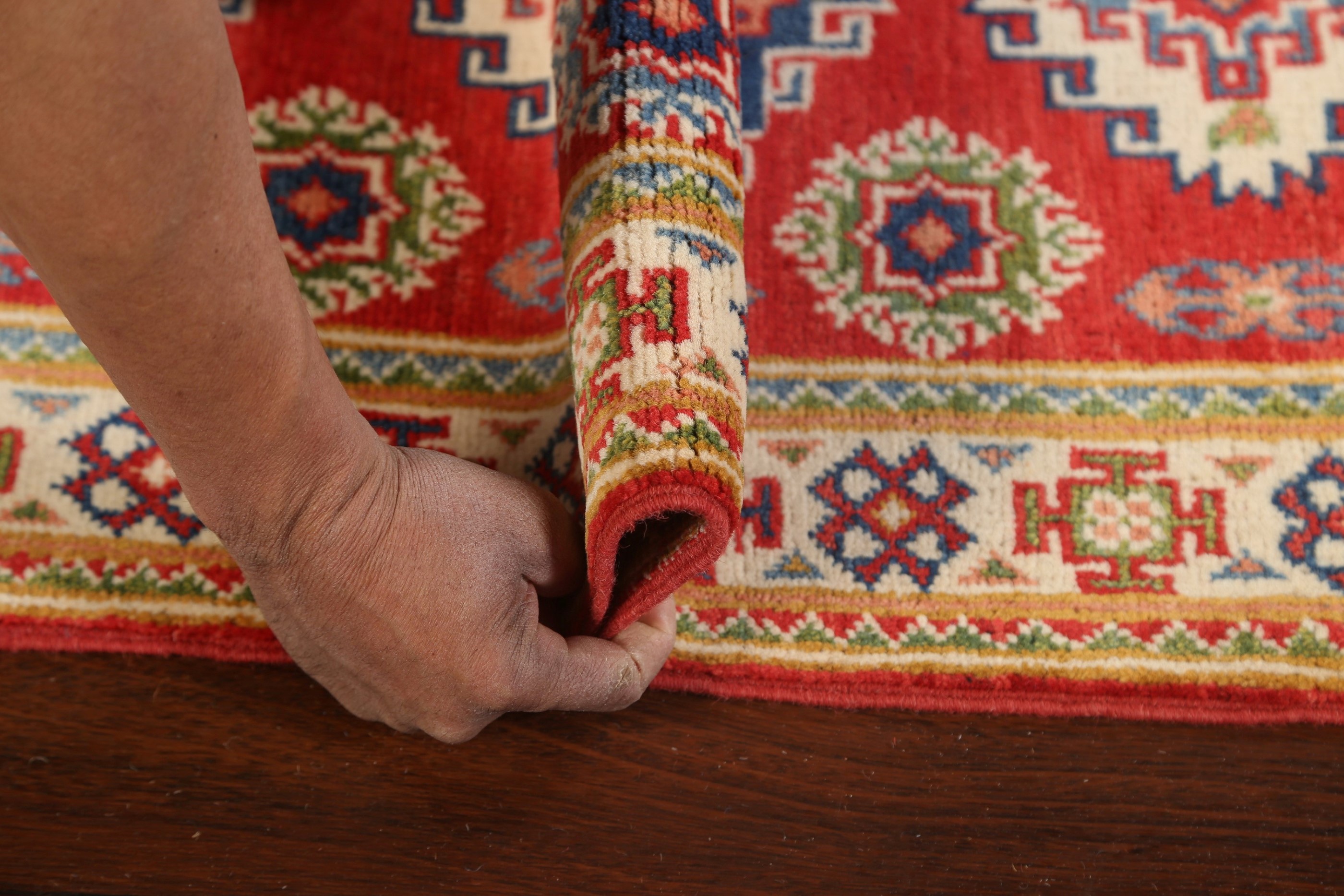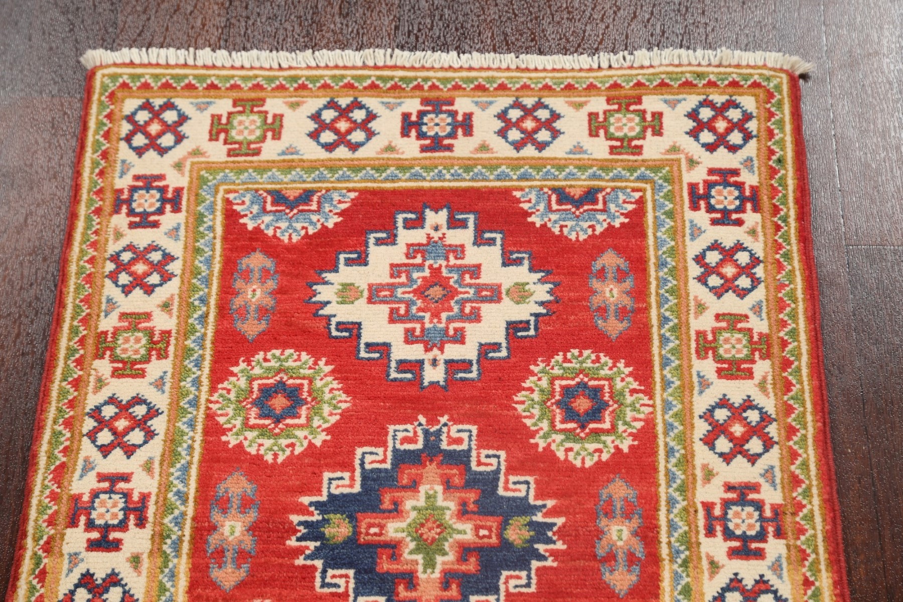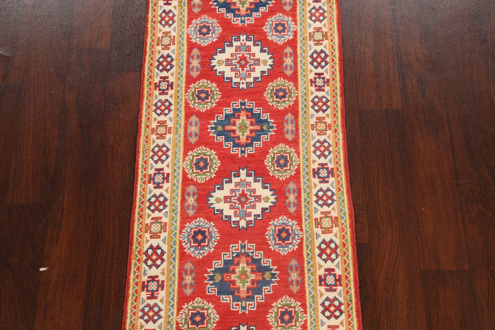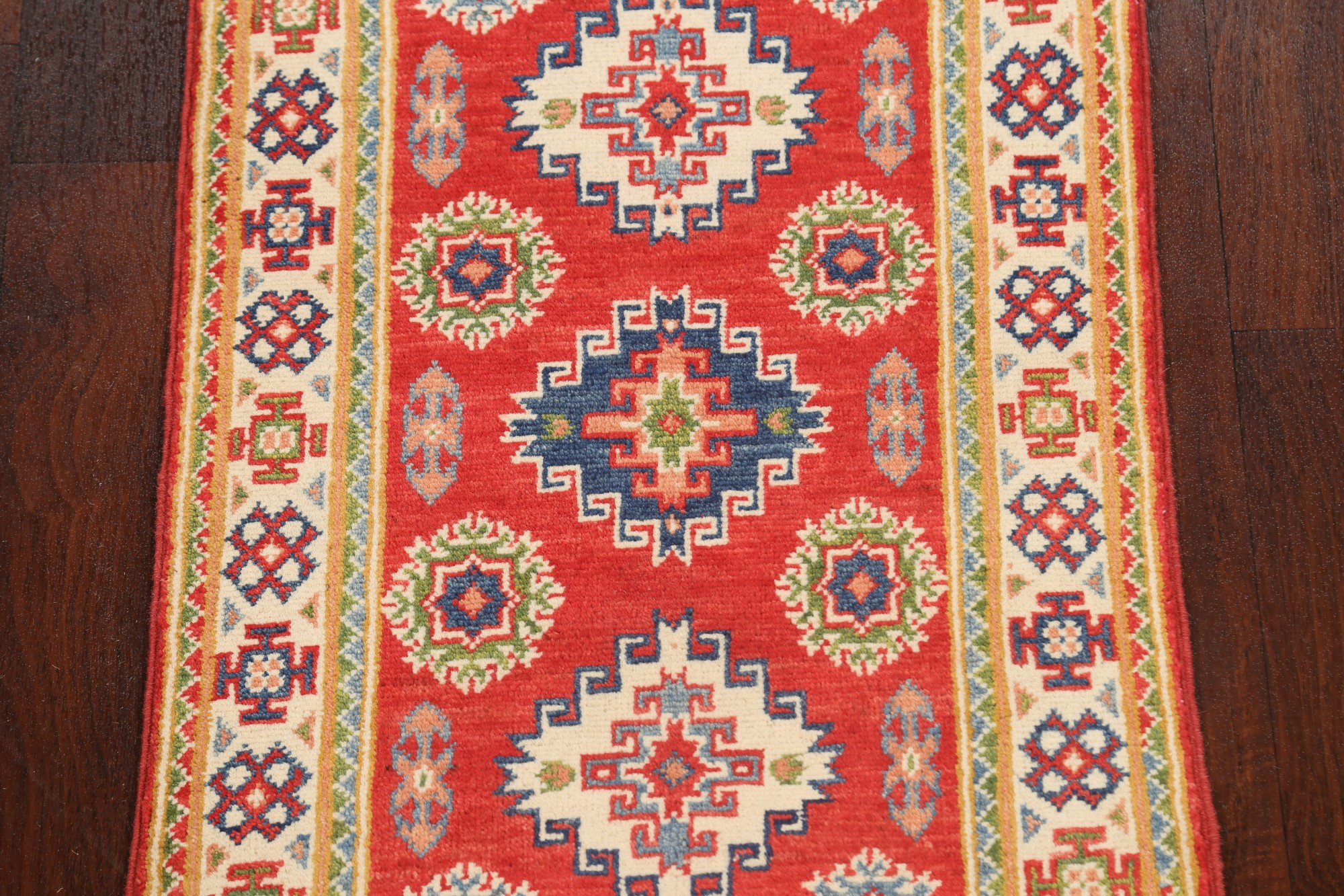 Red Kazak Oriental Runner Rug 2x6 Hand-knotted Wool Geometric Pattern Carpet