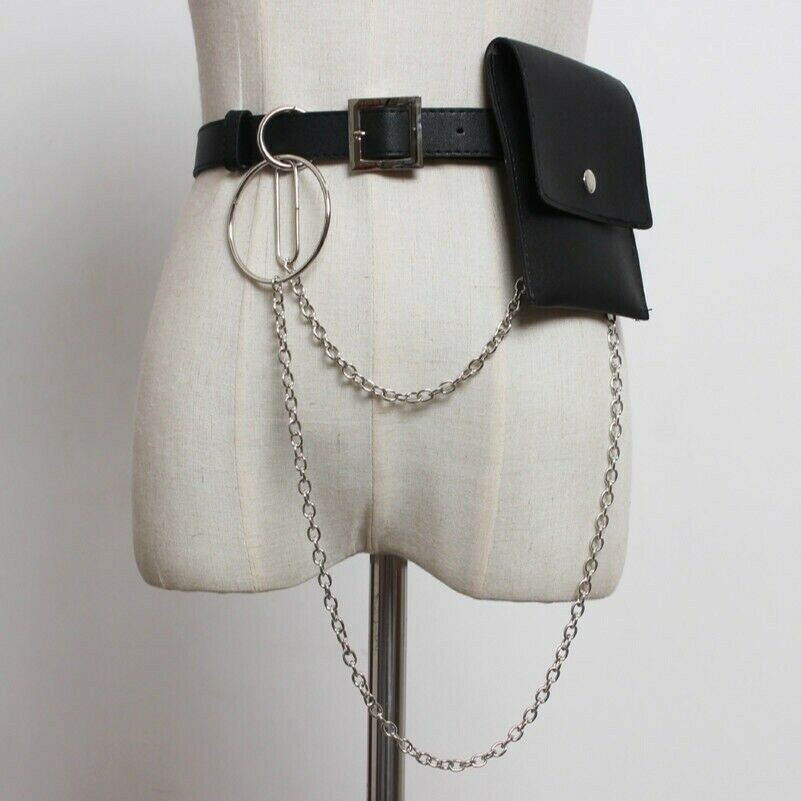Lady Adjustable Leather Chain Belts Waist Harness Clubwear Punk Gothic Bra Retro