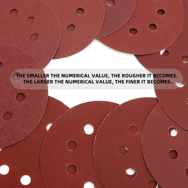 Multiple Grit Sandpaper Set: The palm sander sandpaper set provides you with the multi-grit 8 hole sanding discs you need. The higher the number, the finer the grit.