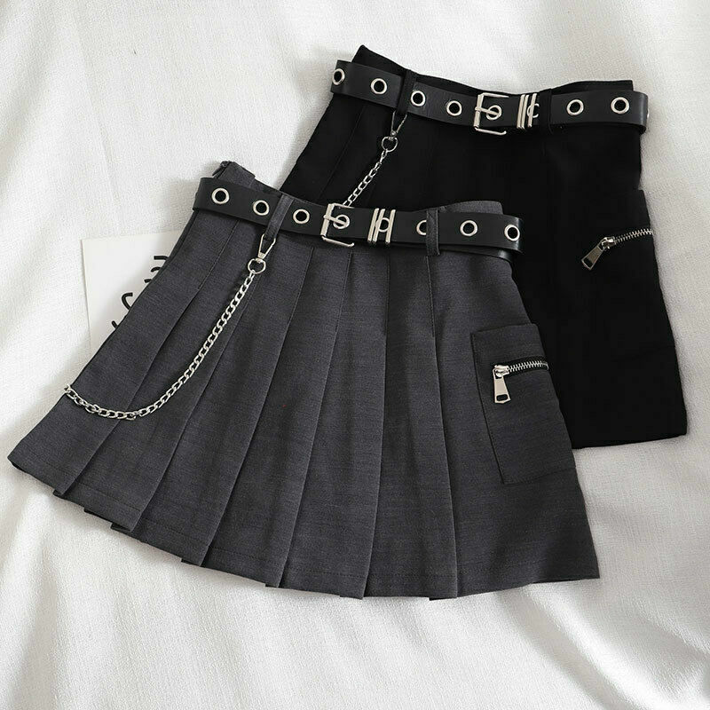 Girl Lady Punk Cargo Skirt Gothic Frill Pocket Pleated Japanese A-line Mini Cute