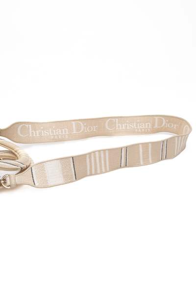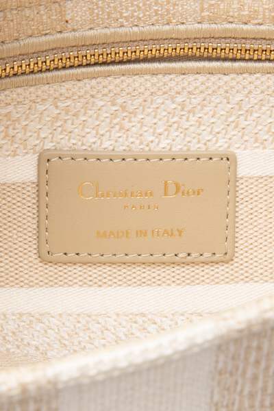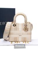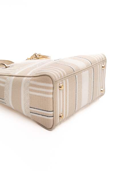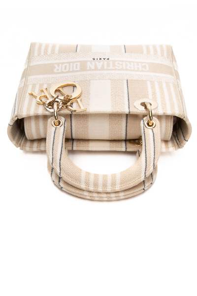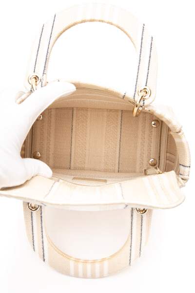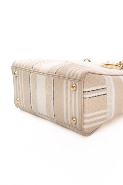 DIOR Neutral Canvas Embroidered Stripes Medium Lady D-Lite Bag