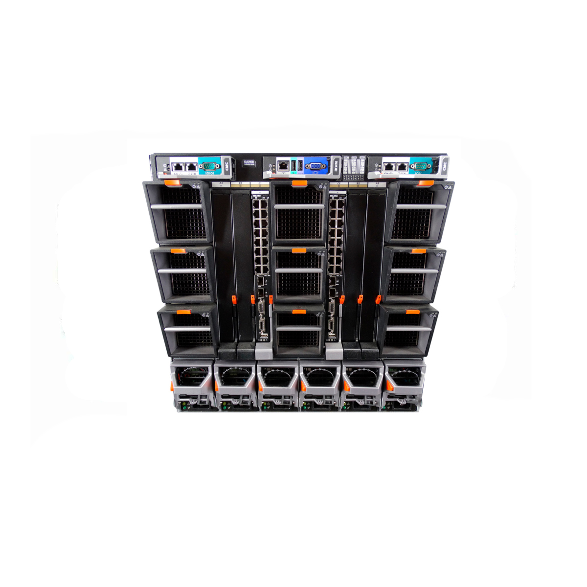 2x CMC 0NC5NP Modulo Plug-in: 10/100/1000 Puerto RJ45 Puerto COM Puerto Staking Con estos módulos puedes controlar todo el sistema con una interfaz gráfica, allí puedes ver todos los blades y puedes configurarlos, administrarlos, actualizarlos y ¡muchas opciones más! 1x IKVM 0K036D: Minimice el espacio y restrinja el desorden de cables con el módulo de conmutador analógico IKVM de Dell. Permite el control desde una sola consola de los servidores blade individuales. |