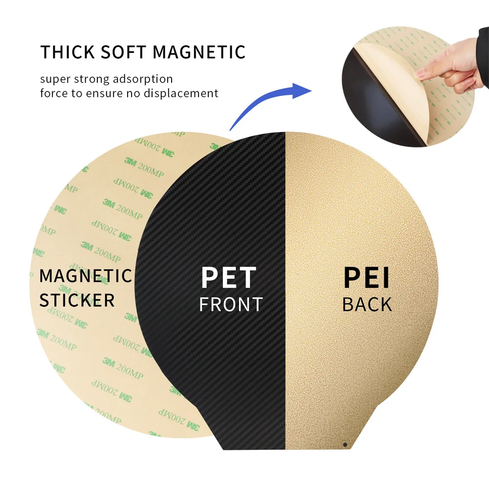 Double Side Magnetic Spring Steel Sheet Round 220/240/265mm PET sheet, 180/220/235/257/241/300/310/350mm PET/PEI/PEO Coated Textured Smooth Flexible Hotbed Plate Sheet For Ender-3 CR10 ( with or without magnetic base )