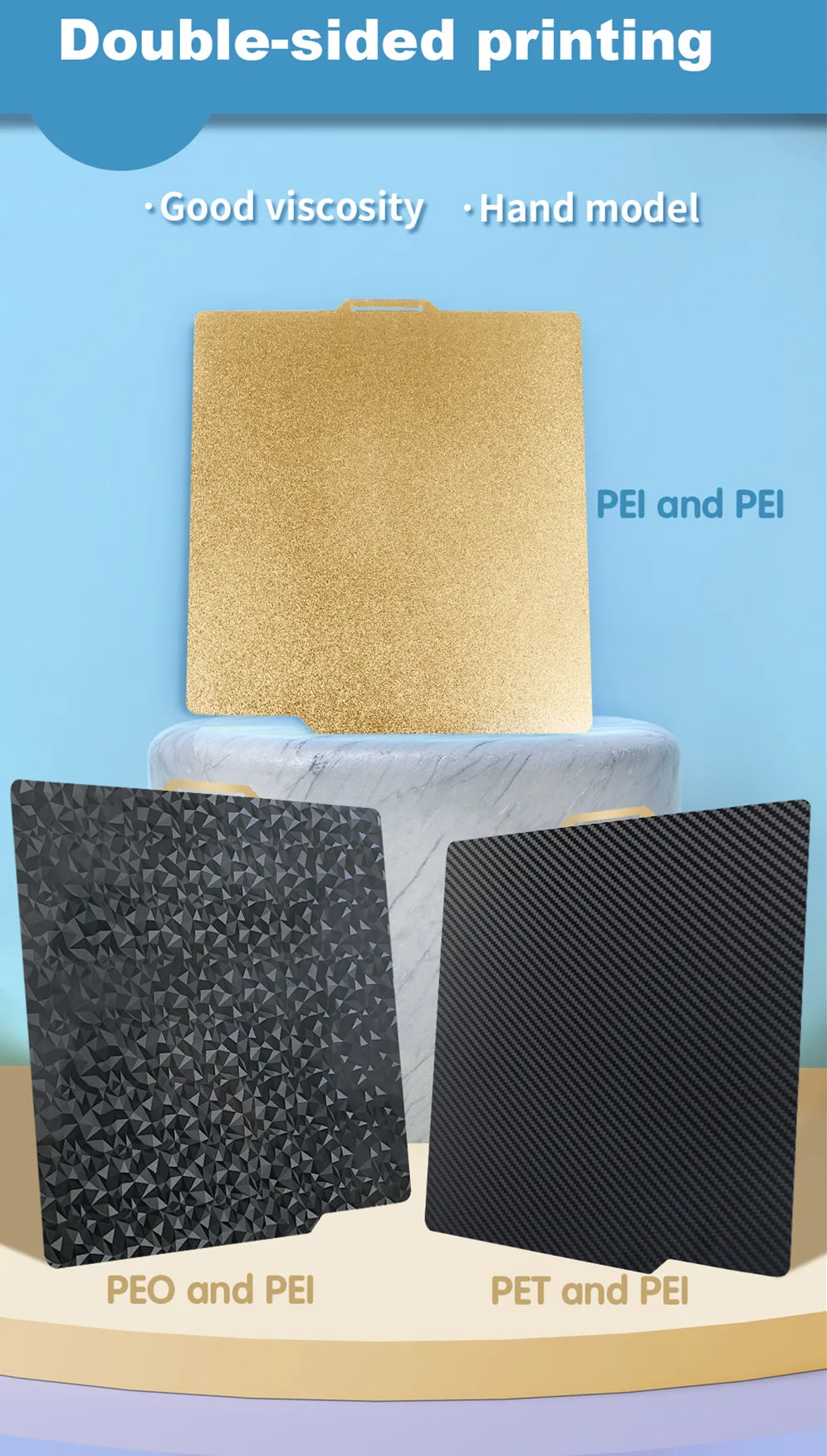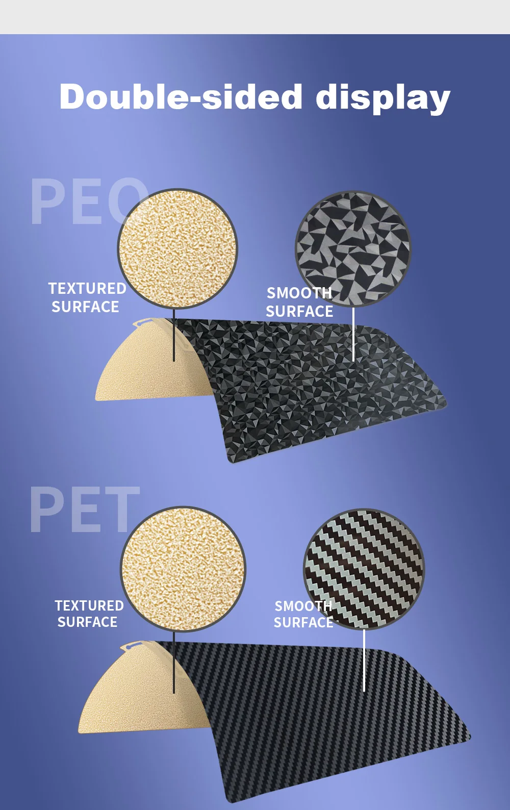 Start printing in PET and PEO sheet, the temperature of the hot bed can be set to 40°C-80°C according to the actual situation (PEO/PET do not exceed 80°C).