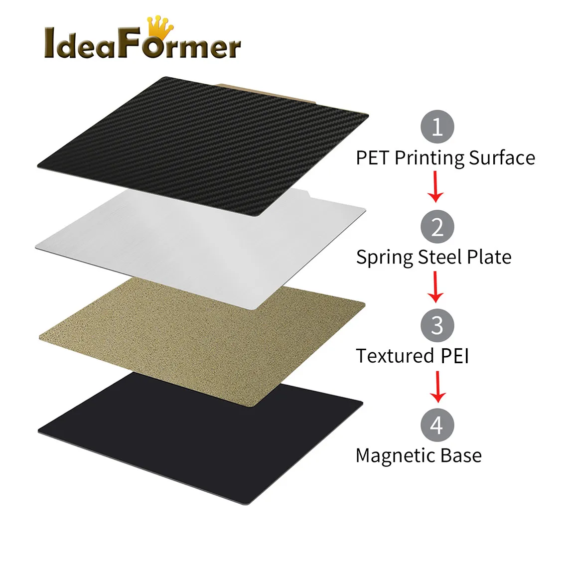1. Without magnetic base: one piece Spring Steel Build Plate Sheet.