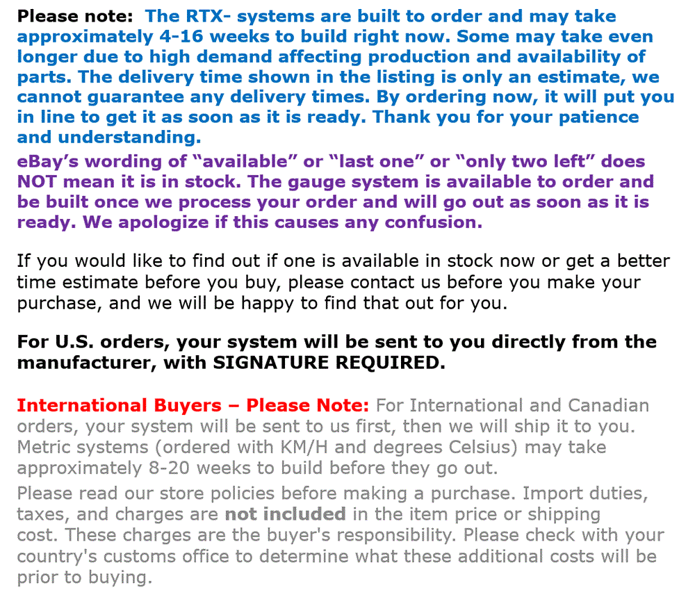 additional cost) but may take approximately 12-20 weeks to build. If you want the metric system, please send us a message with your payment.