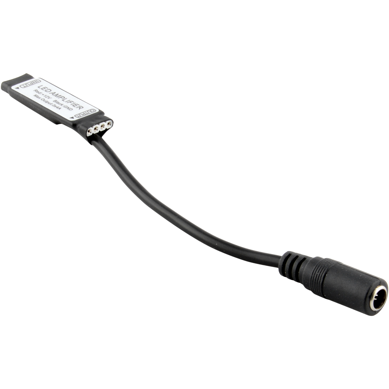 This mini inline LED amplifier allows you to extend a strip of RGB strip lighting with the same color and brightness while using an additional power source for the new strip.