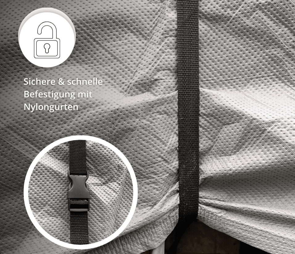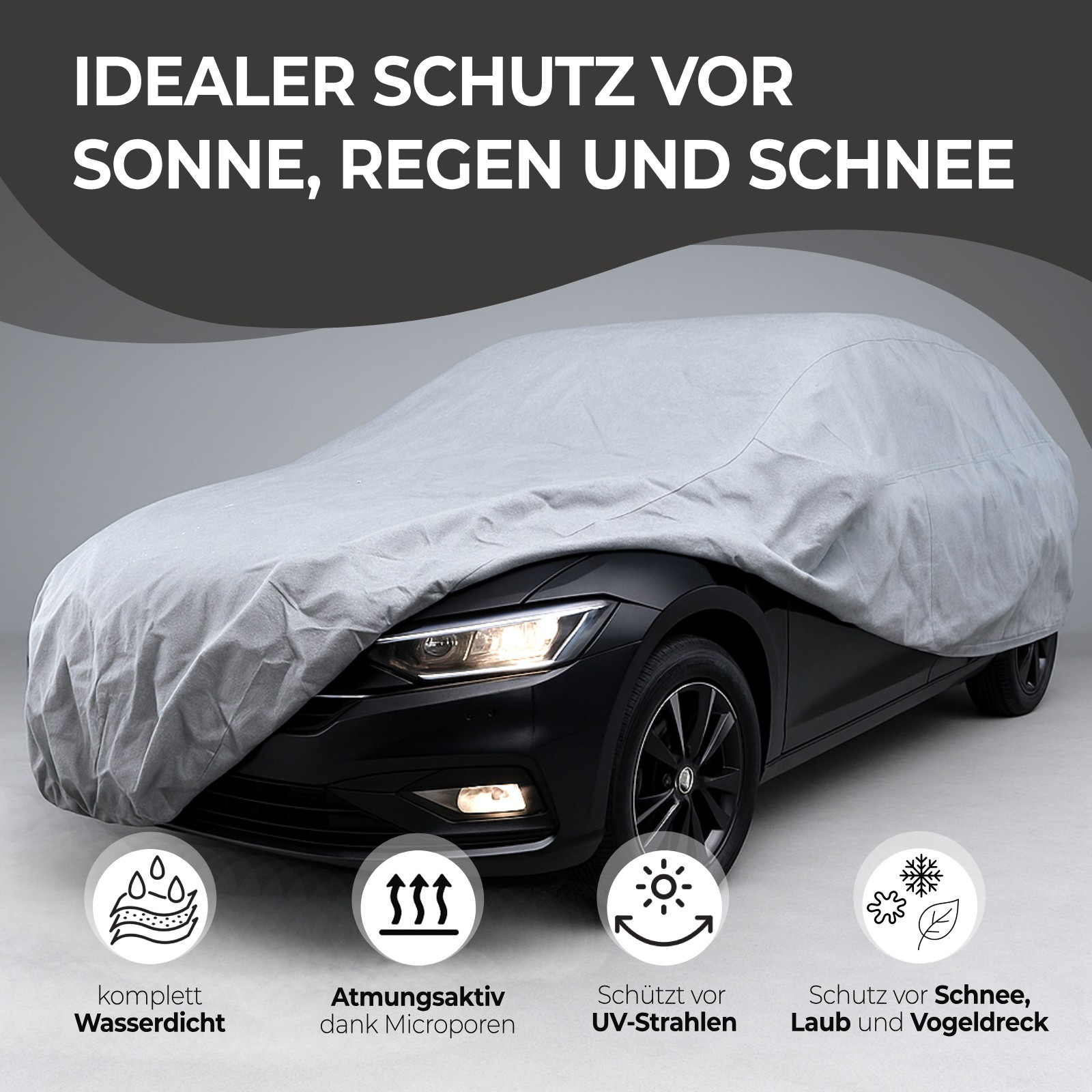 ![]() Autoplane In-/Outdoor passend für: BMW 5er F10 Bj 2009-2016 Stufenheck Die Autoplane besteht aus einem hochwertigen 4-lagigen Polypropylen-Vliesstoff, wovon eine Schicht aus Polyethylen-Folie besteht, die wasserdicht ist. Das Material ist besonders widerstandsfähig gegen Witterungseinflüsse und reißfest. Die wasserdichte Plane mit ultraschall verschweißten Nähten sorgt dafür, dass kein Regenwasser eintritt selbst bei Dauerregen oder Schnee. Die gesamte Plane ist 100% wasserdicht und gleichzeitig atmungsaktiv durch integrierte Mikroporen. Diese ermöglichen eine grundlegende Luftzirkulation und reduzieren so das Risiko von Feuchtigkeit, Schimmel oder Korrosion ohne die Schutzwirkung zu beeinträchtigen. Die Innenseite der Plane ist weich und nicht scheuernd, das schont den Lack u. verhindert Kratzer.