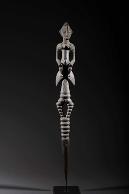 Réf: sf-1466 Hauteur 58 CM Description du produit Sceptre de chef Sénoufo de Côte d'Ivoire. Pièce de plus de 50 ans. Pièce sur socle. art africain, masques d'Afrique art africain african tribal arte africana afrikanische kunst Pièce livrée avec une facture et un certificat d'authenticité.