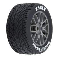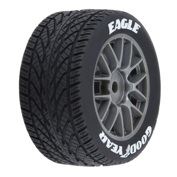 \r\nThe Goodyear® Eagle NASCAR® Cup Series Wet-Weather Tires are ready to take on the rain. Completely transform the performance of your Stock Car racing machine on wet or general street conditions and have the confidence you'll have the grip you need. These directional v-pattern tires and Cup Series wheel will give your Losi® NASCAR® Racecar a super scale look featuring white printed sidewall lettering and gunmetal wheels, just like the Next-Gen Cup cars use!