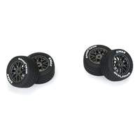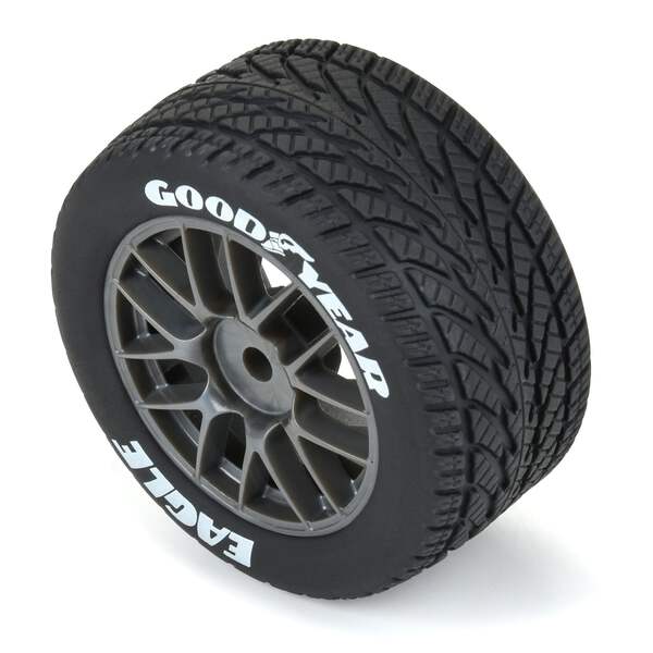 \r\n\r\nPRO1028310 | Goodyear® Eagle NASCAR® Cup Series Wet-Weather Tires Mounted on Gunmetal Split-Spoke 8mm Wheels (4) for Losi® NASCAR® Racecar Front or Rear