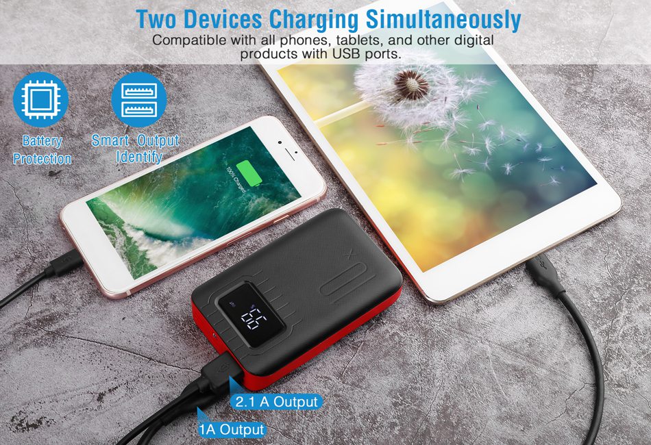 - Reliable Dual Charging Solution:Our 10000mAh power bank detects your device automatically and can charge 2 electronic devices simultaneously at full speed(2.1A+1A).Share the charging ports with your family or friends conveniently.