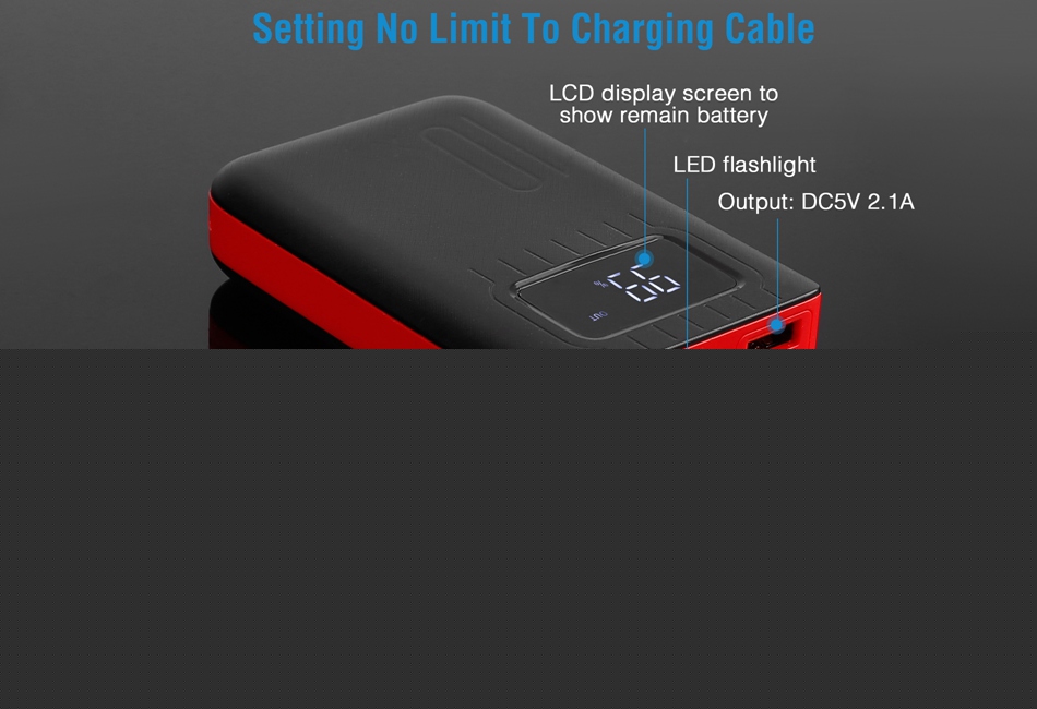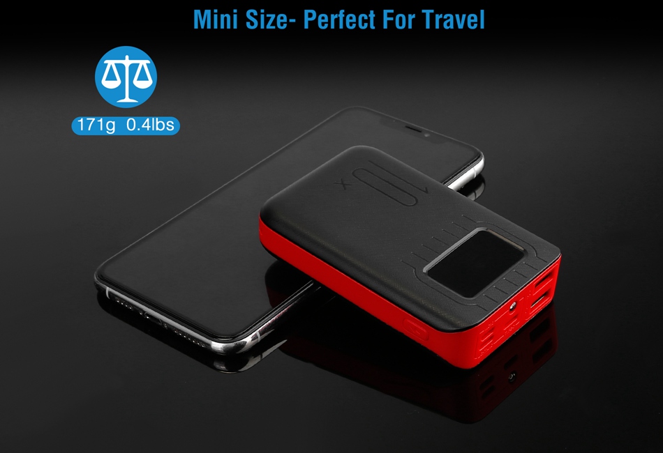 - Smart LCD Display:Show remaining power by exact percentage numbers(such as 17%) and LED display is alerting you of the need to charge the power bank.