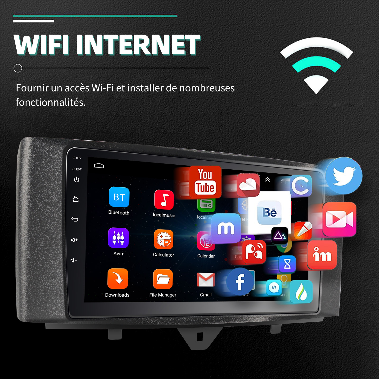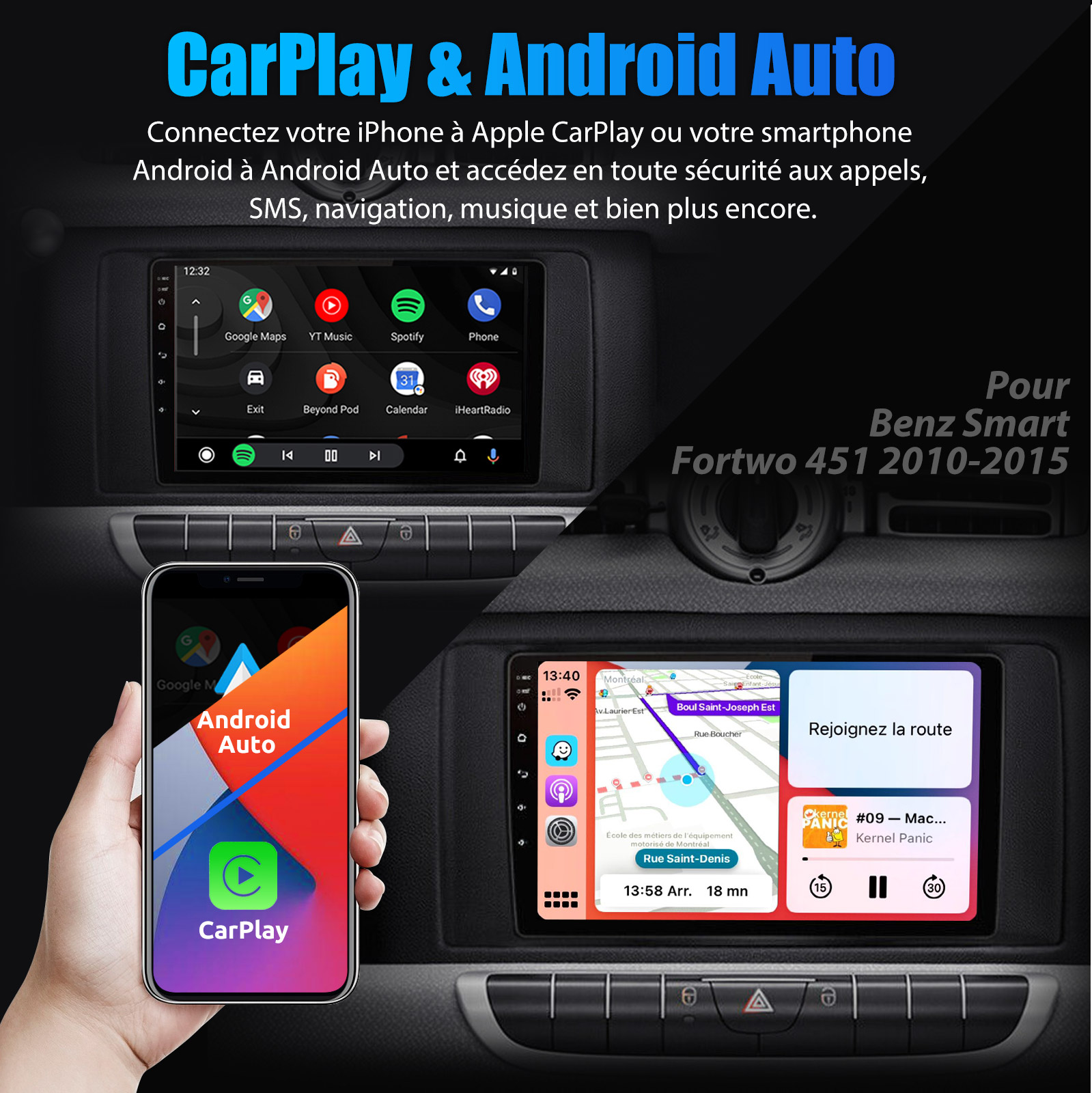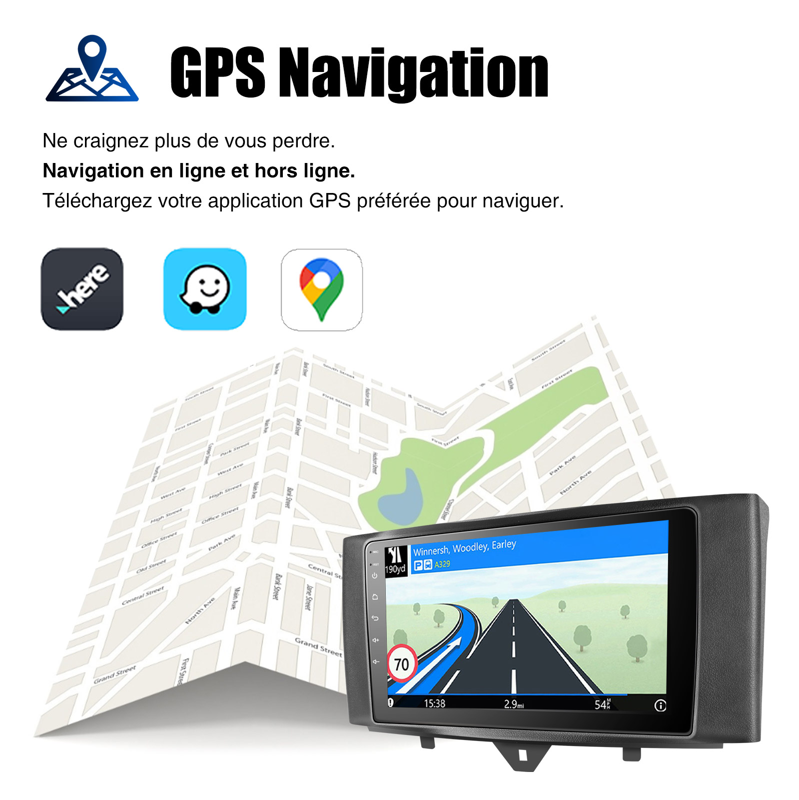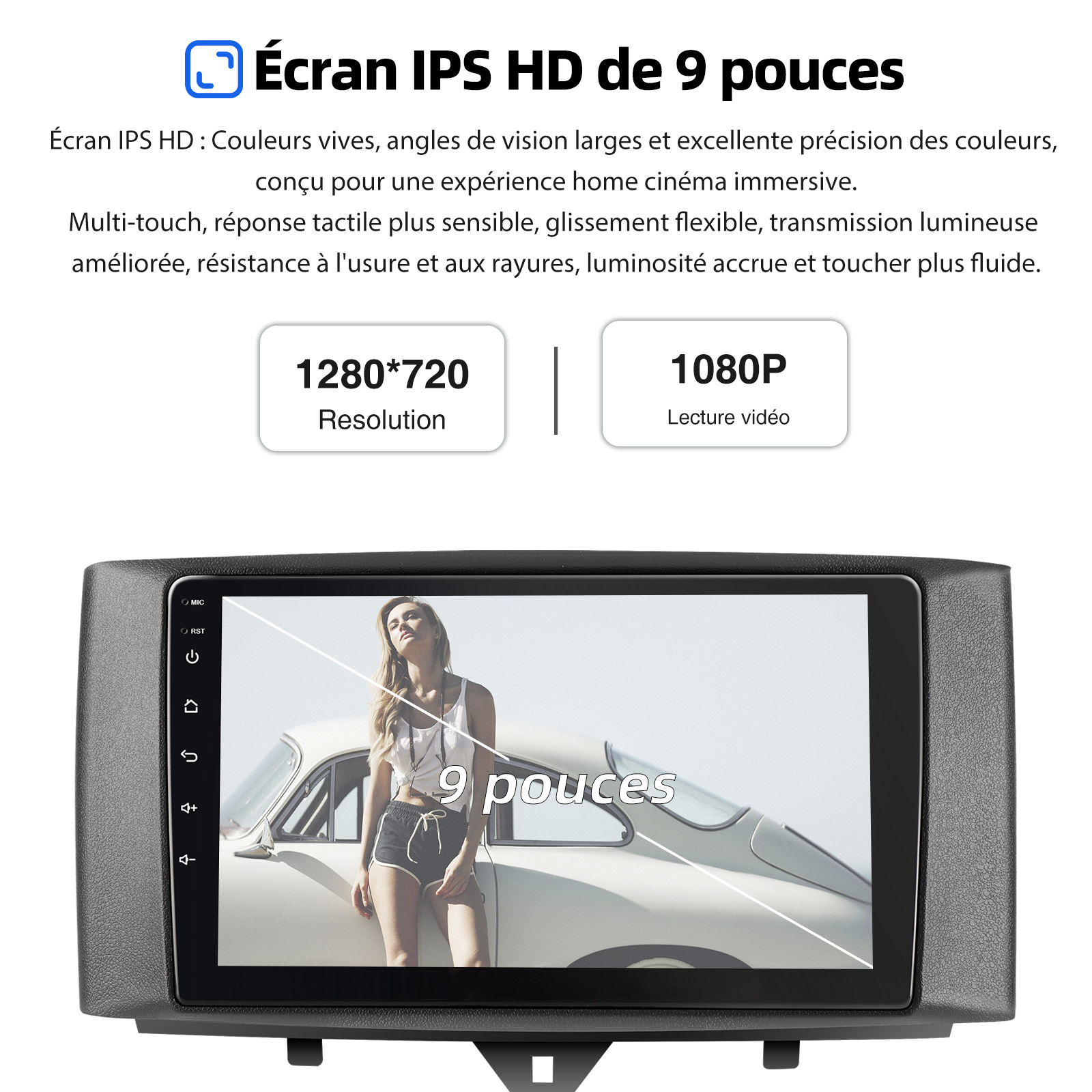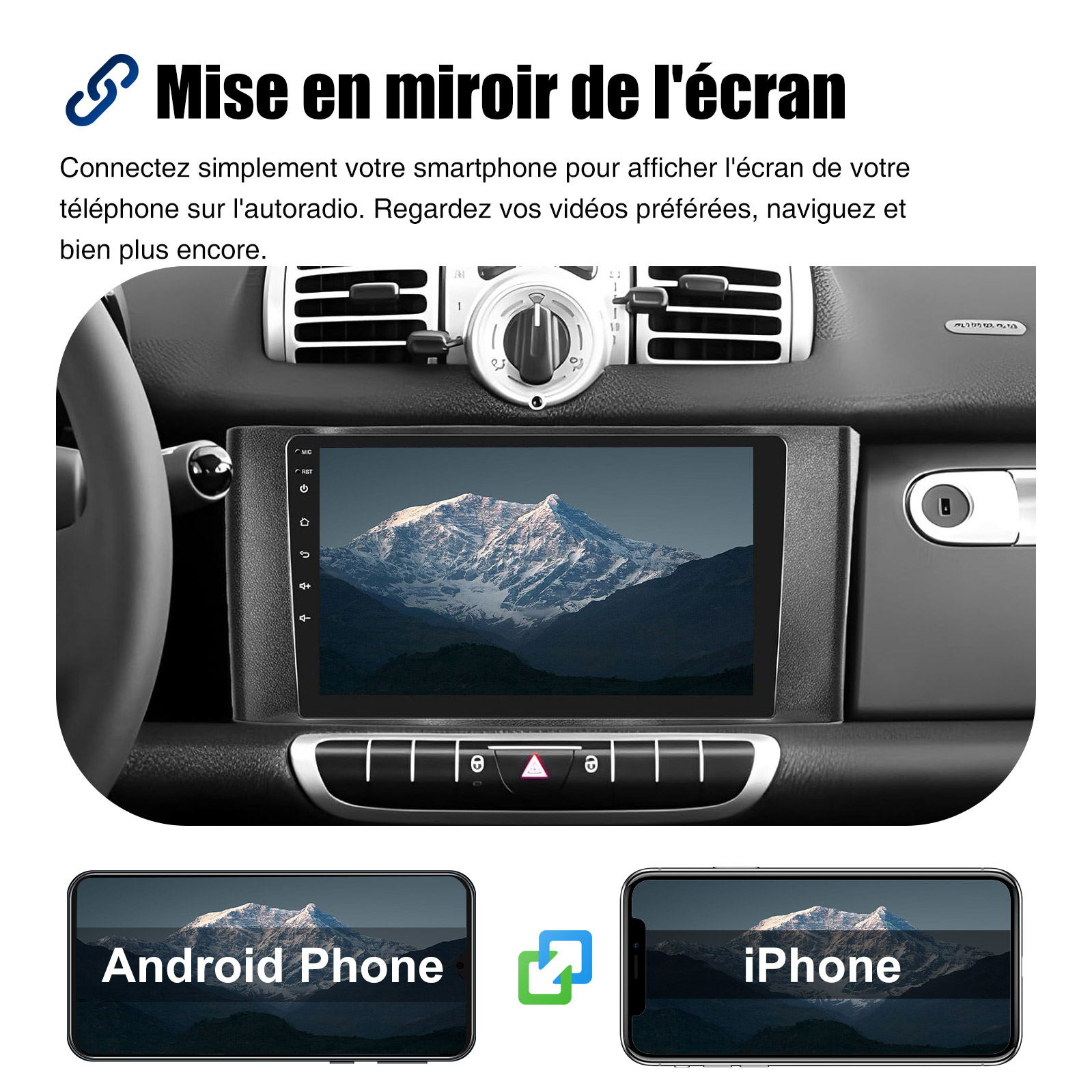 Autoradio Android 15 9 pouces pour Smart Fortwo 451: Cet autoradio Bluetooth est adapté pour VW/PASSAT/GOLF/SEAT/SKODA/POLO. L'autoradio Android avec écran tactile capacitif 9", 1Go/2Go/4Go de RAM et 32Go/64Go de ROM vous permet de télécharger vos applications et vidéos préférées pour que la conduite ne soit plus ennuyeuse. (Choisissez pour vous-même).Aucun châssis supplémentaire, aucun câble à modifier, installation simple et rapide. Compatible avec le bus CAN, il prend en charge la plupart des fonctions d'origine : commandes au volant, feux de recul, lecture des données de l'ordinateur de bord, etc.Ajoutez un microphone avec l'entrée microphone arrière pour rendre votre voix plus claire (microphone non inclus).