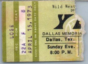 vintage Oui Ticket Stub 15 avril 1973 Dallas Texas