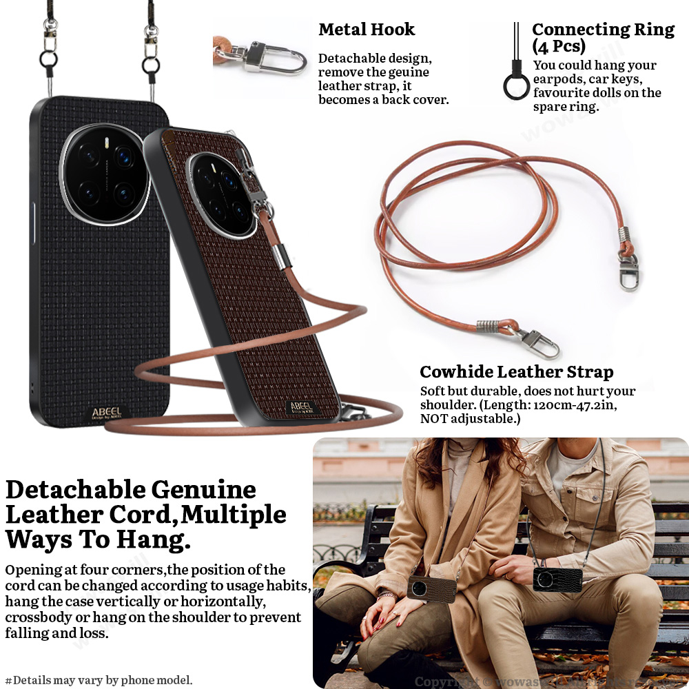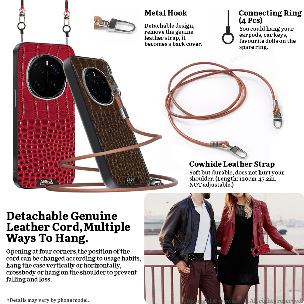 120cm genuine leather shoulder strap that can be easily attached to any of the four reinforced corner strap holes.