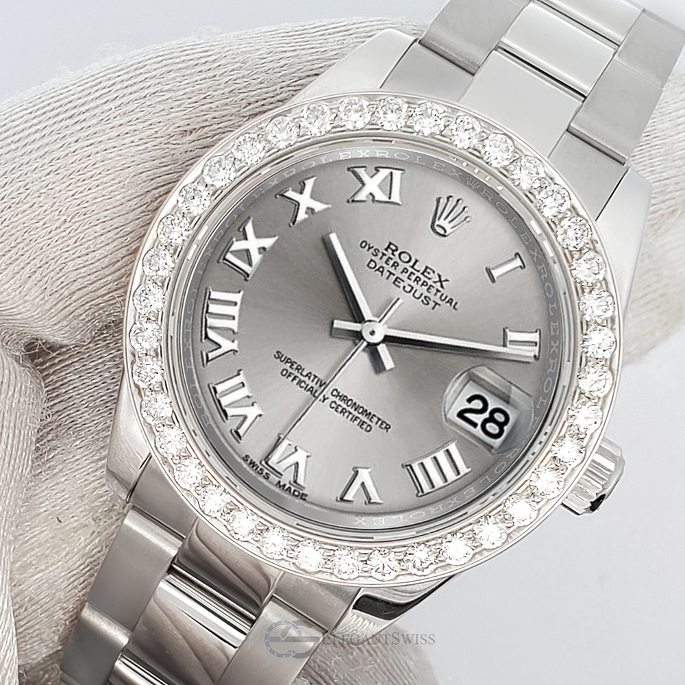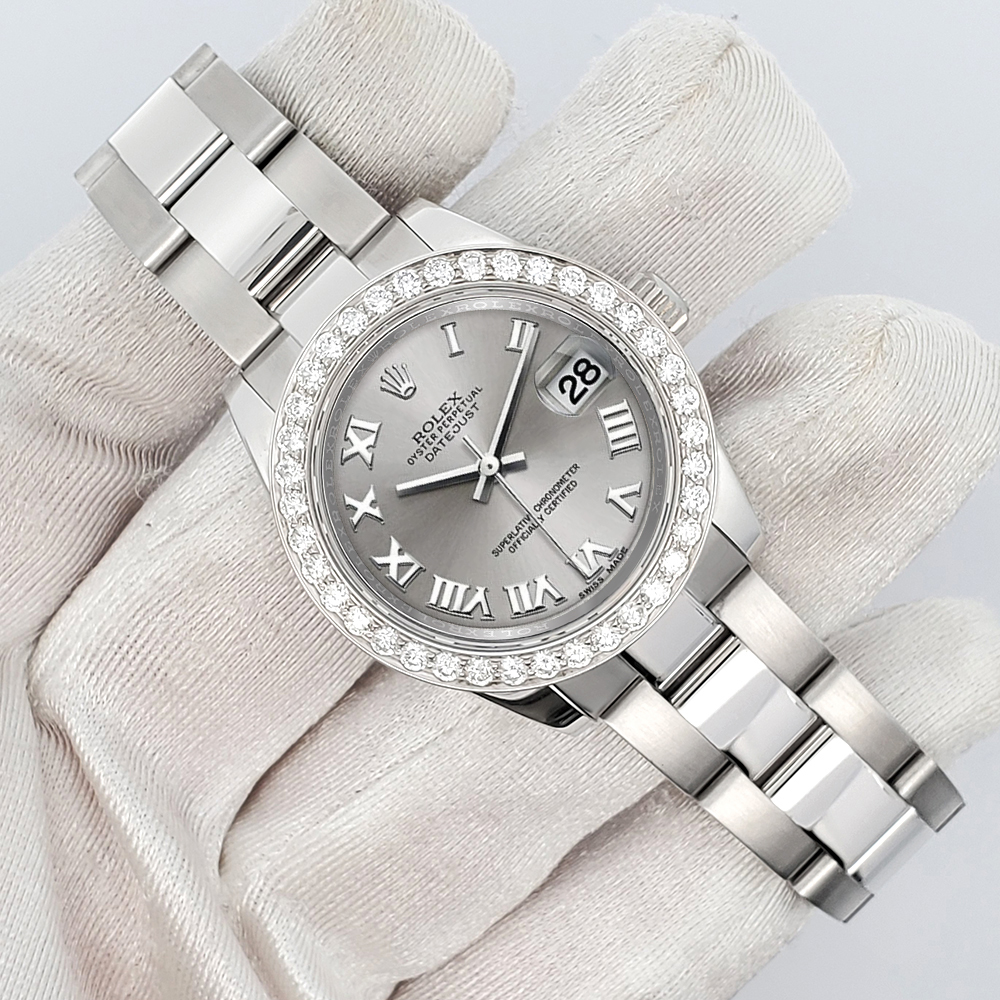 Rolex Datejust Midsize 31mm 1.6ct custom diamond bezel (diamonds are not set by Rolex) stainless Steel watch, Ref 178240.