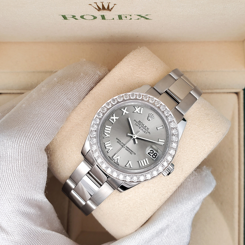 Rolex Datejust Midsize 31mm Sliver Roman Dial 1.6ct 178240 Diamond Bezel Watch