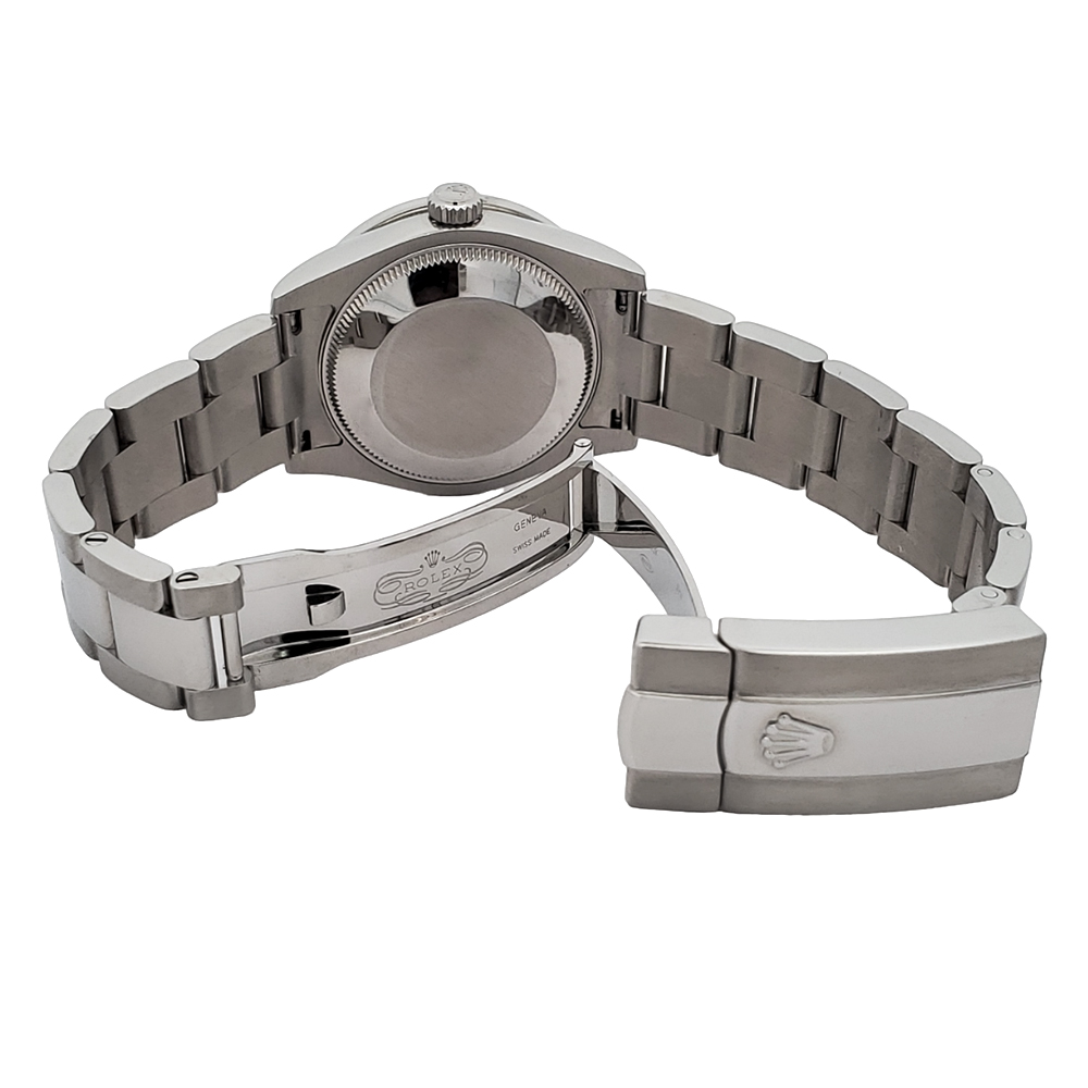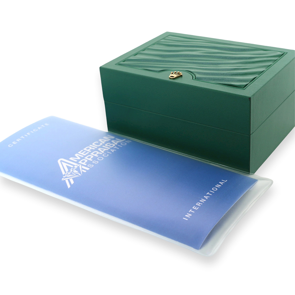 Excellent, pristine condition, works flawlessly, comes with Rolex box, certificate of appraisal, ElegantSwiss Three Year Warranty, and LIFETIME Individual Diamond Replacement Warranty. The watch is running strong and keeping accurate time, having been timed to precision on Witschi Expert Timing Machine.