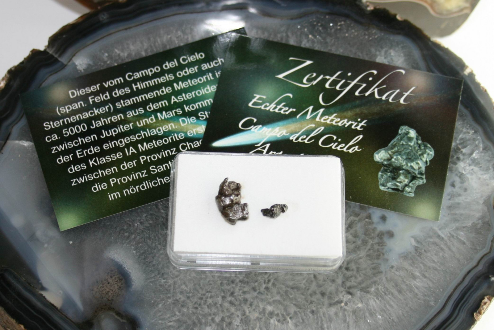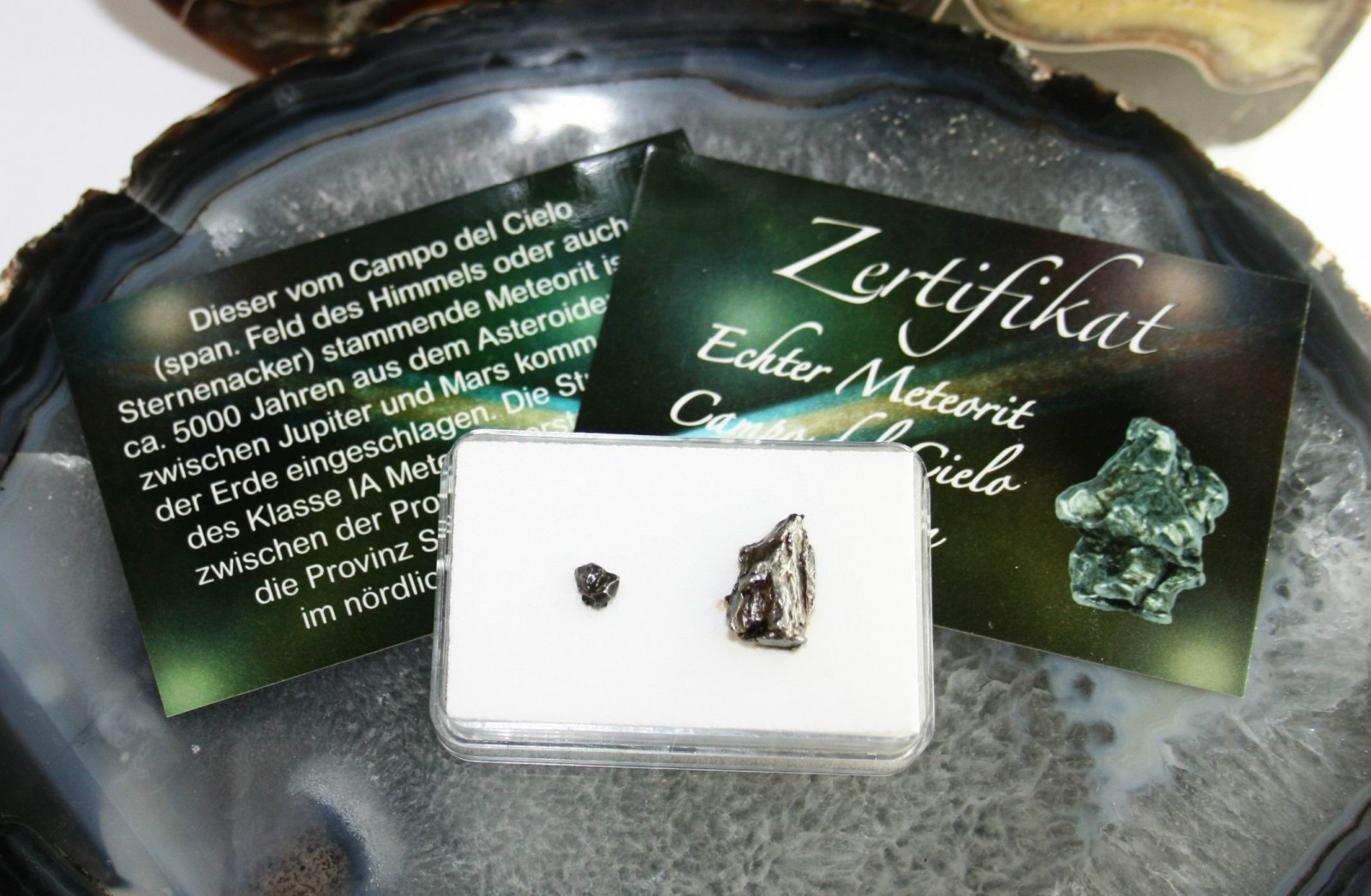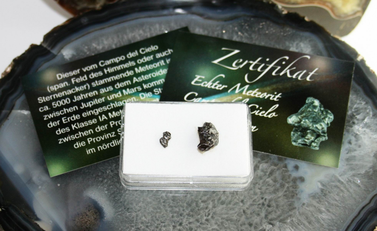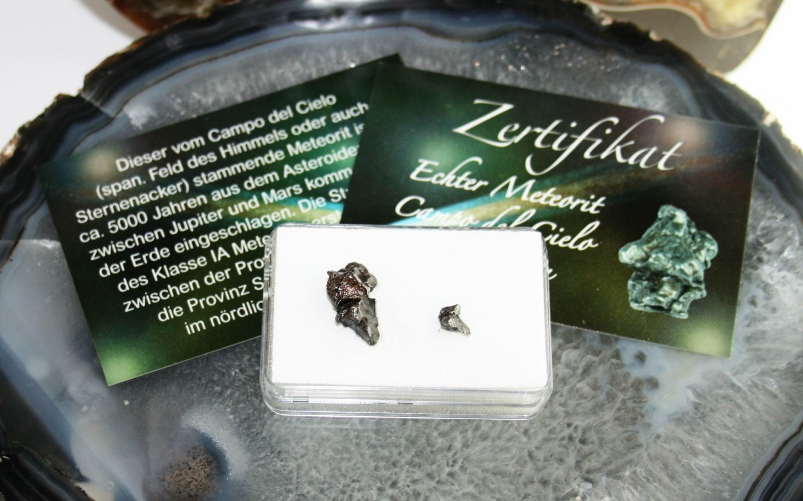 2 Stück Meteorite in Box mit Zertifikat.