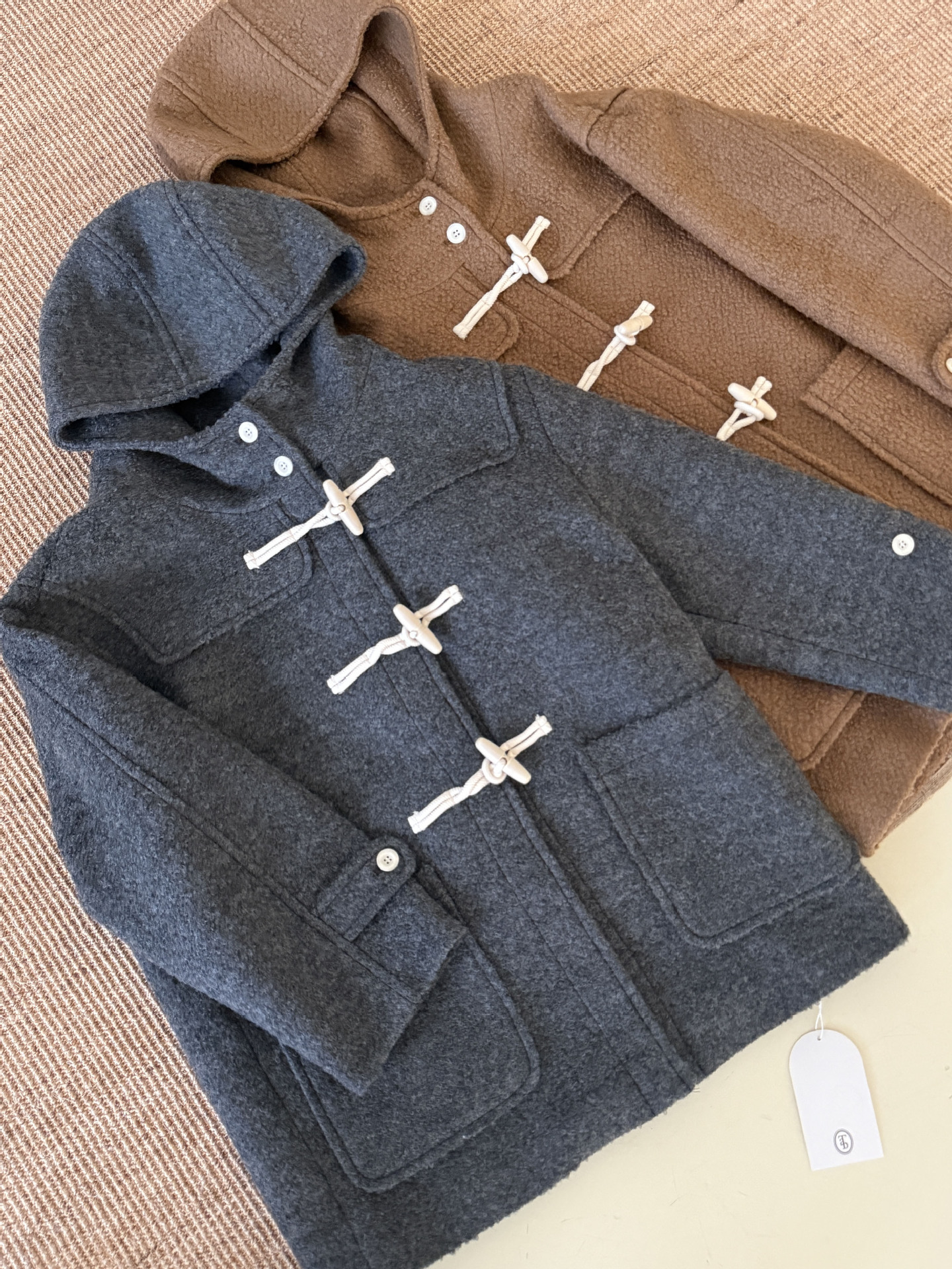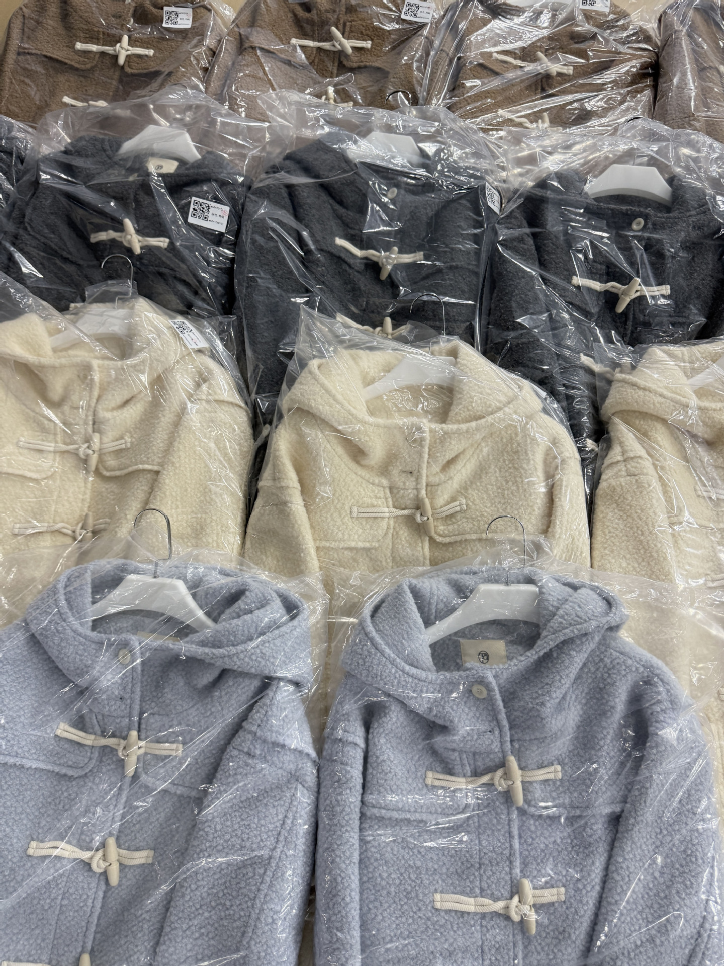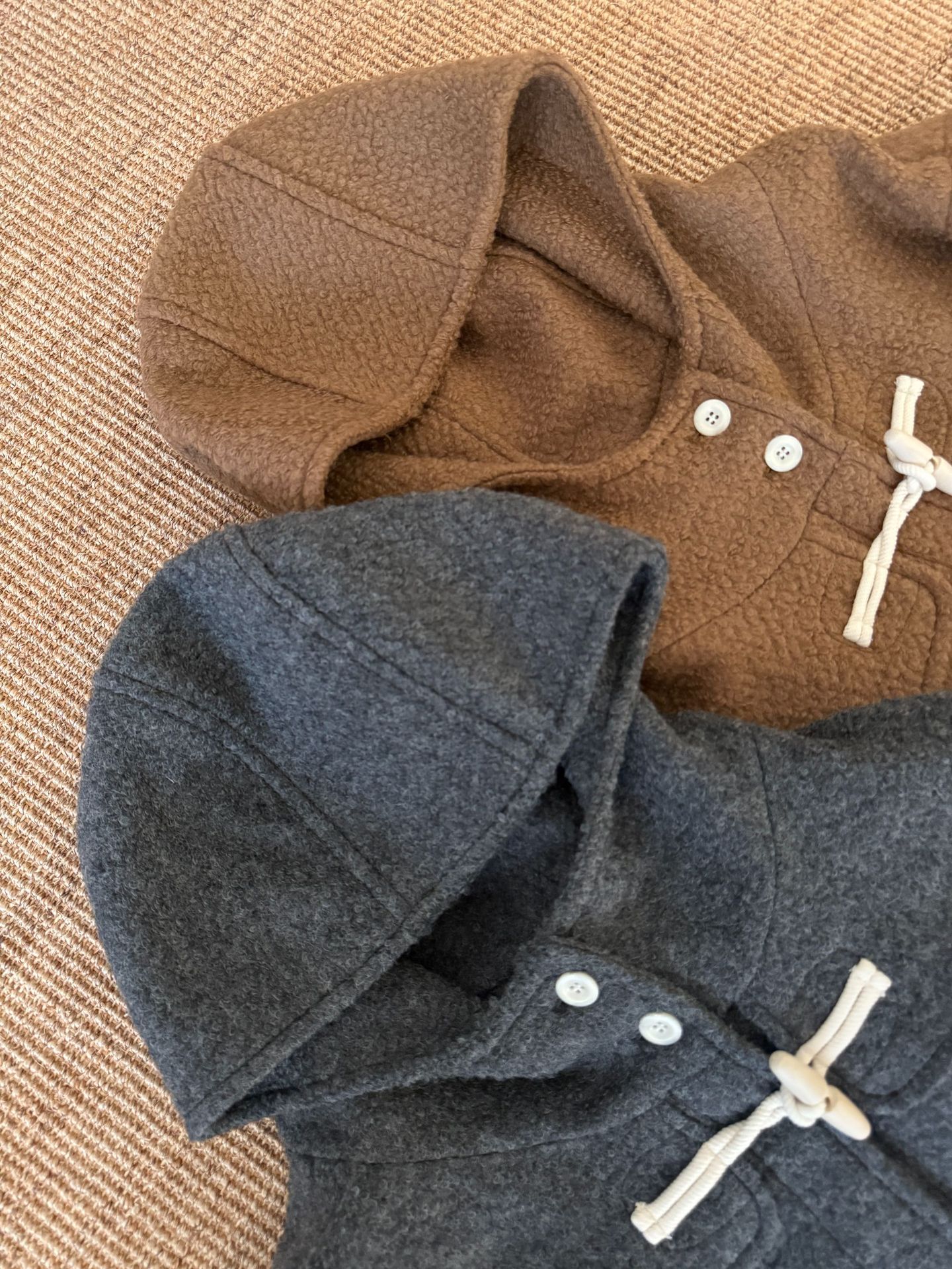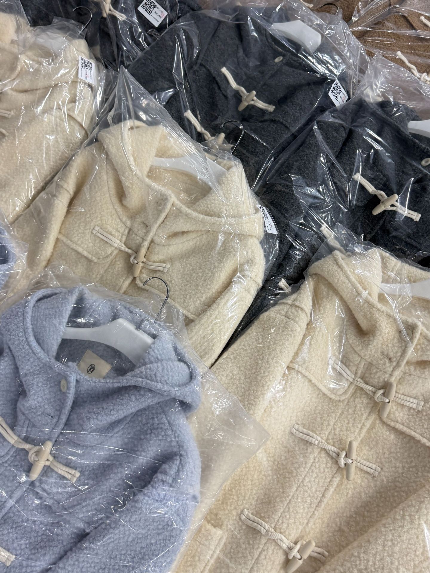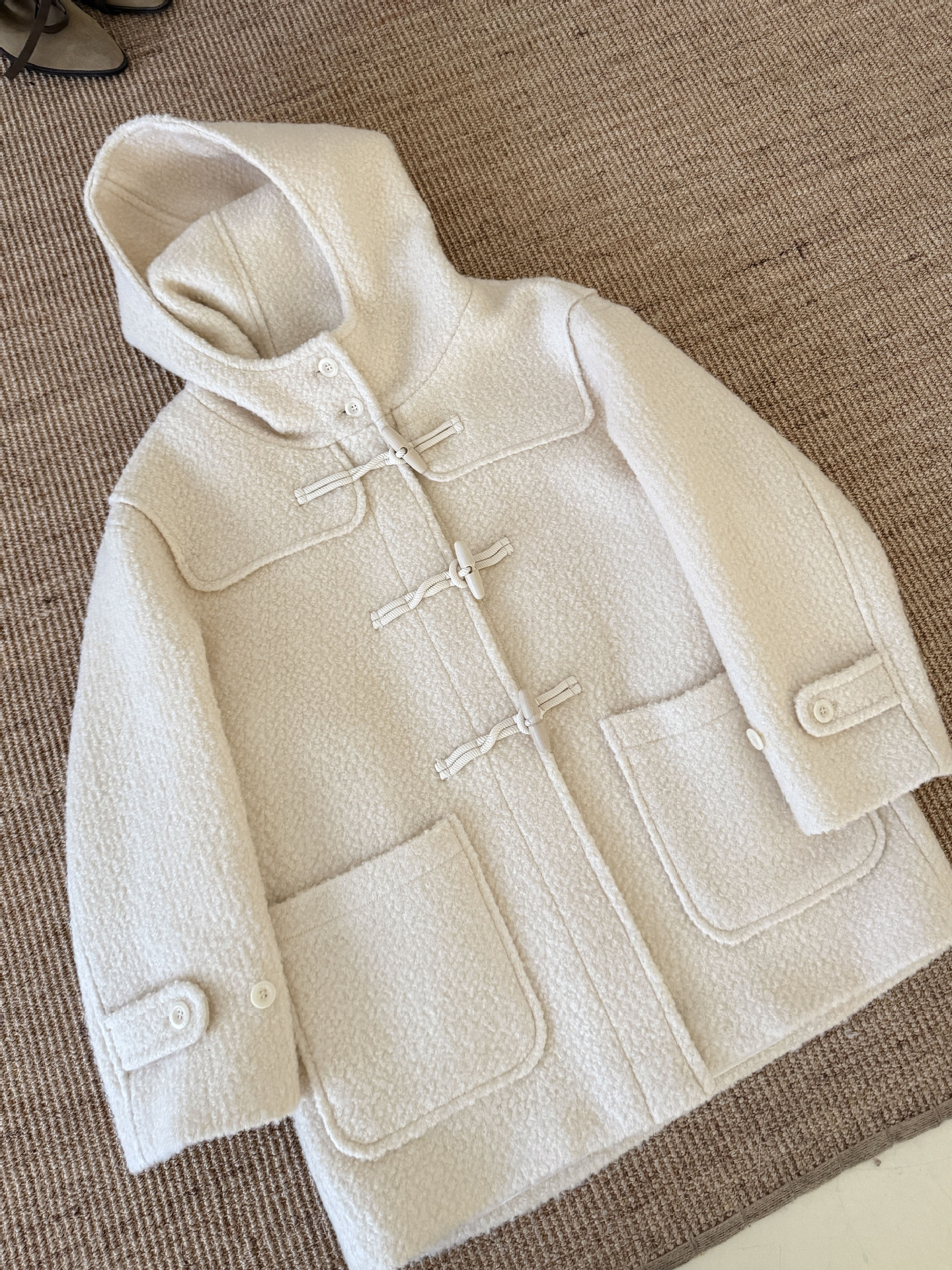 2026 New Korean Solid Color Hooded Horn Button Coat Women's Wool Trench Jackets