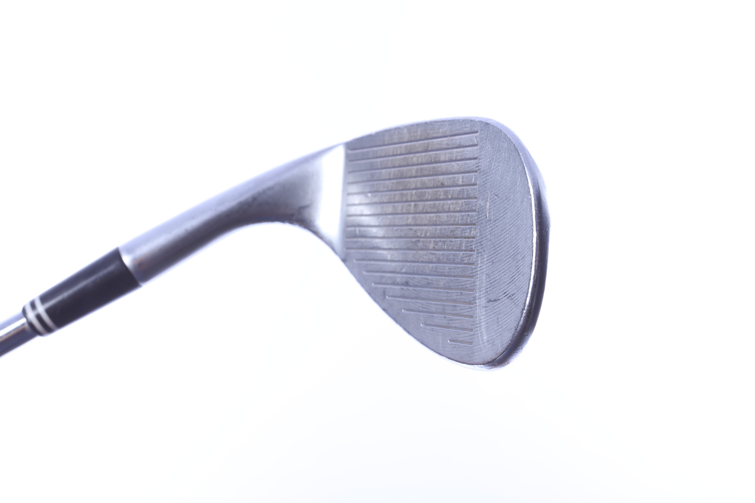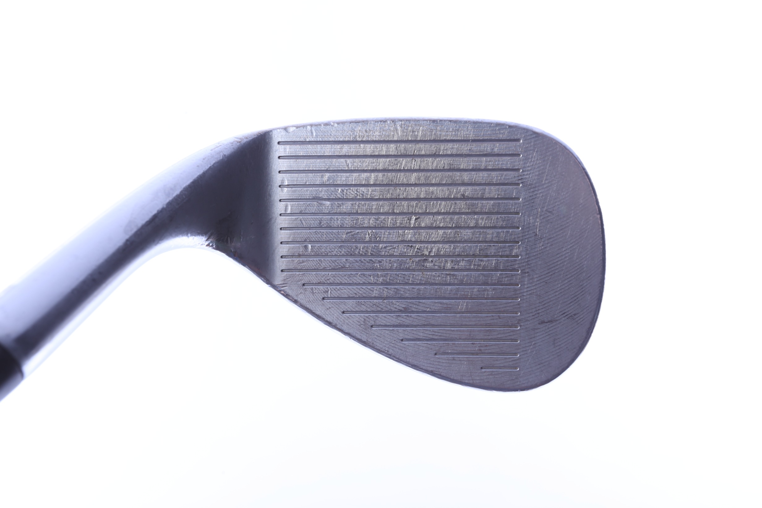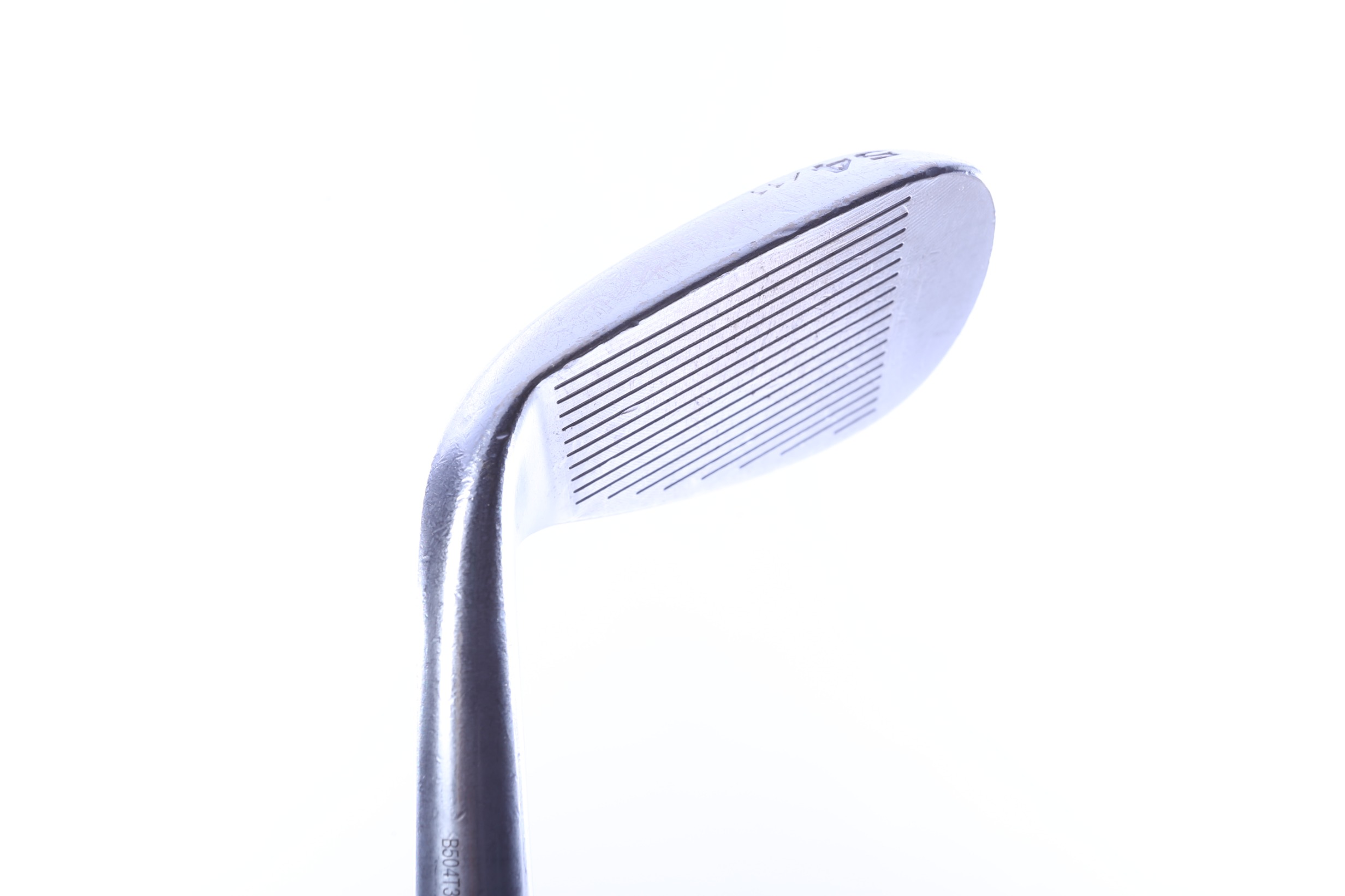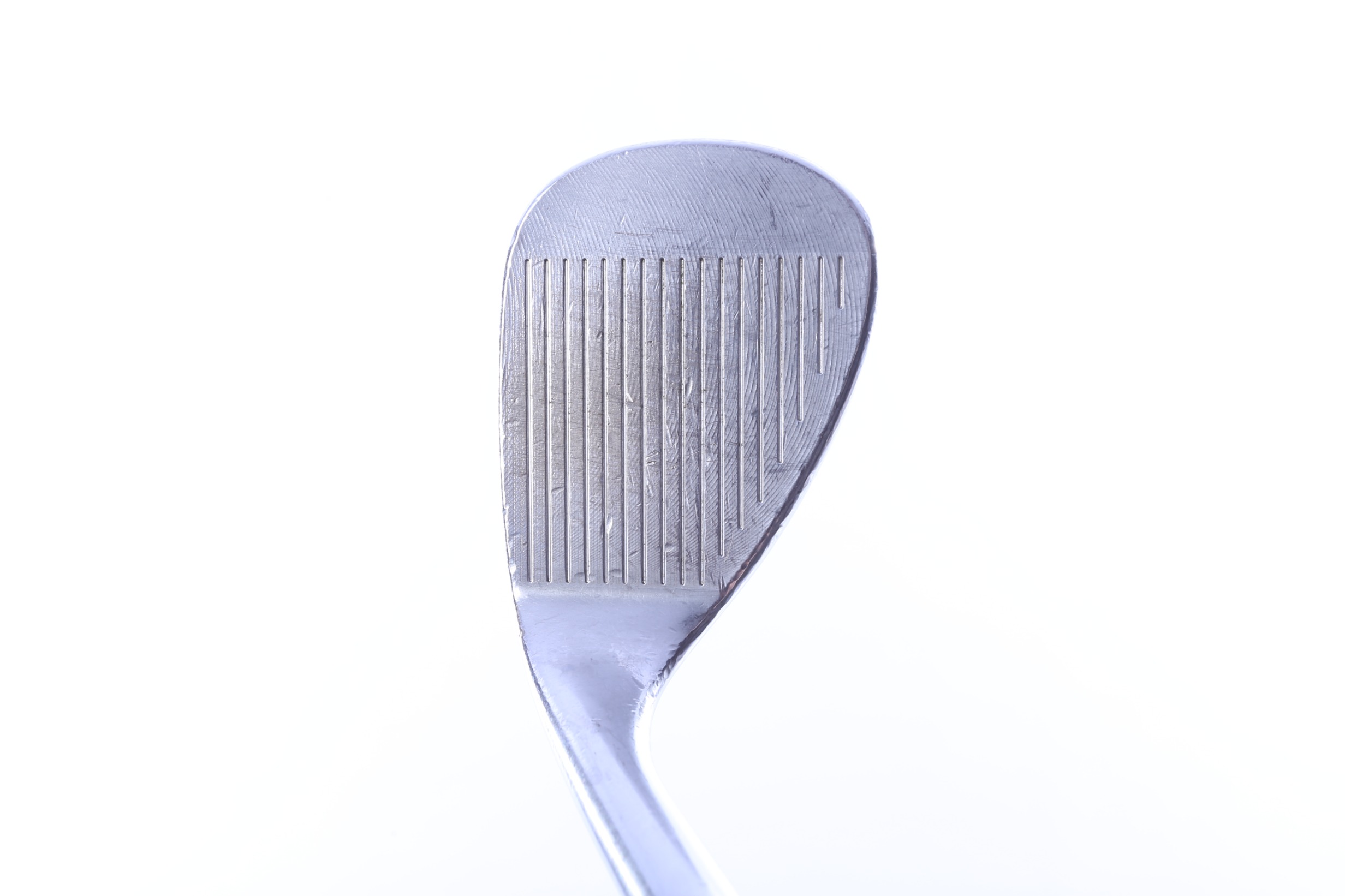 This wedge is in average condition for its age. It has been well played by its former owner, and shows cosmetic wear including scratches, nicks, and paint chips on the face, sole, and crown.