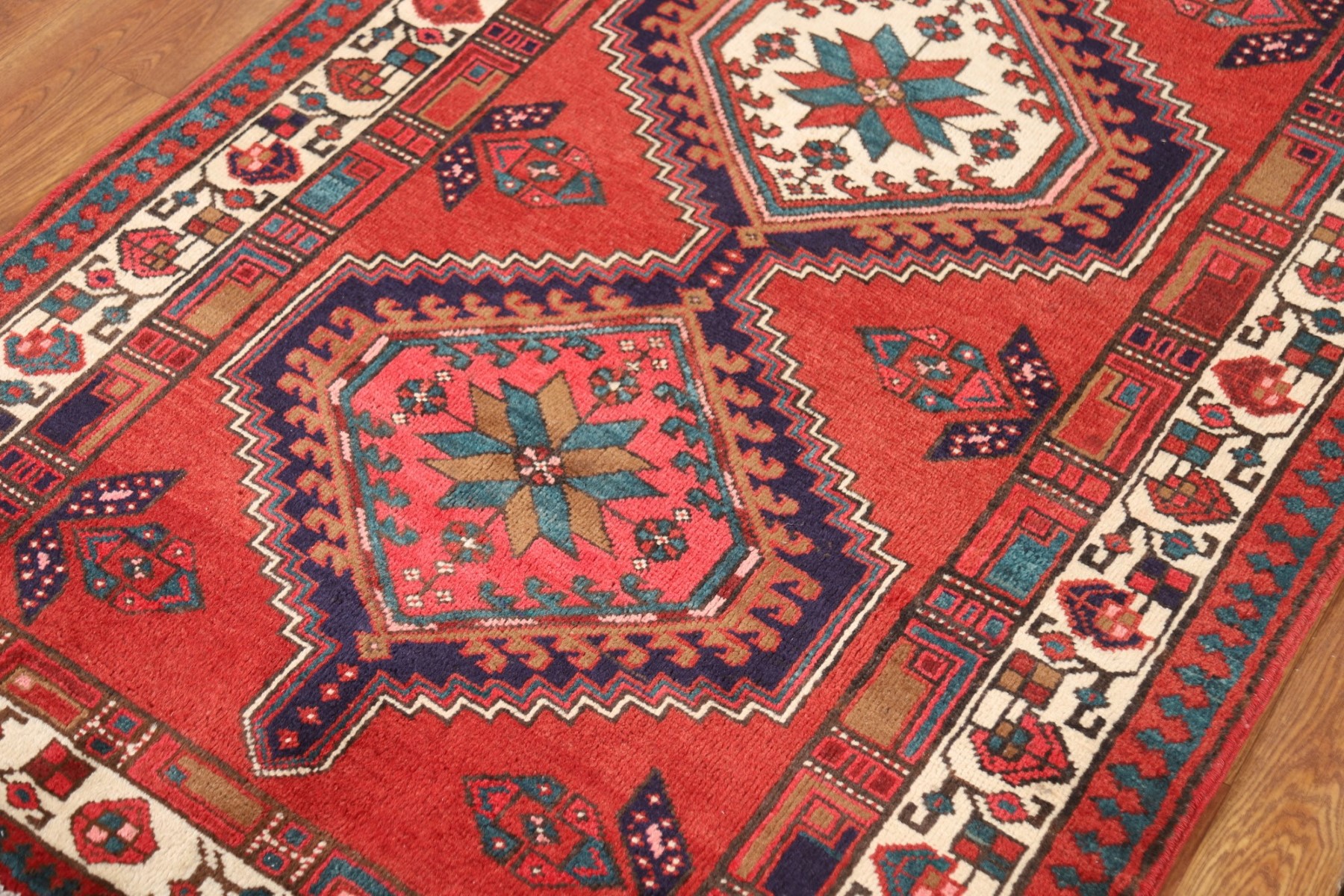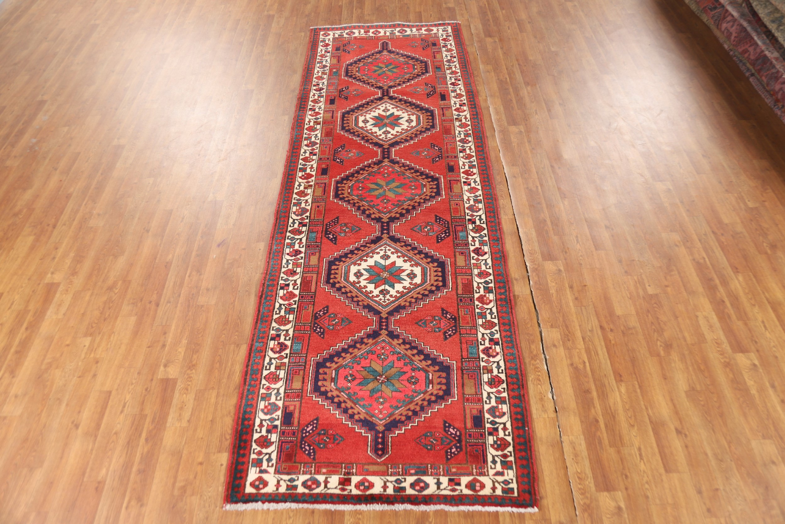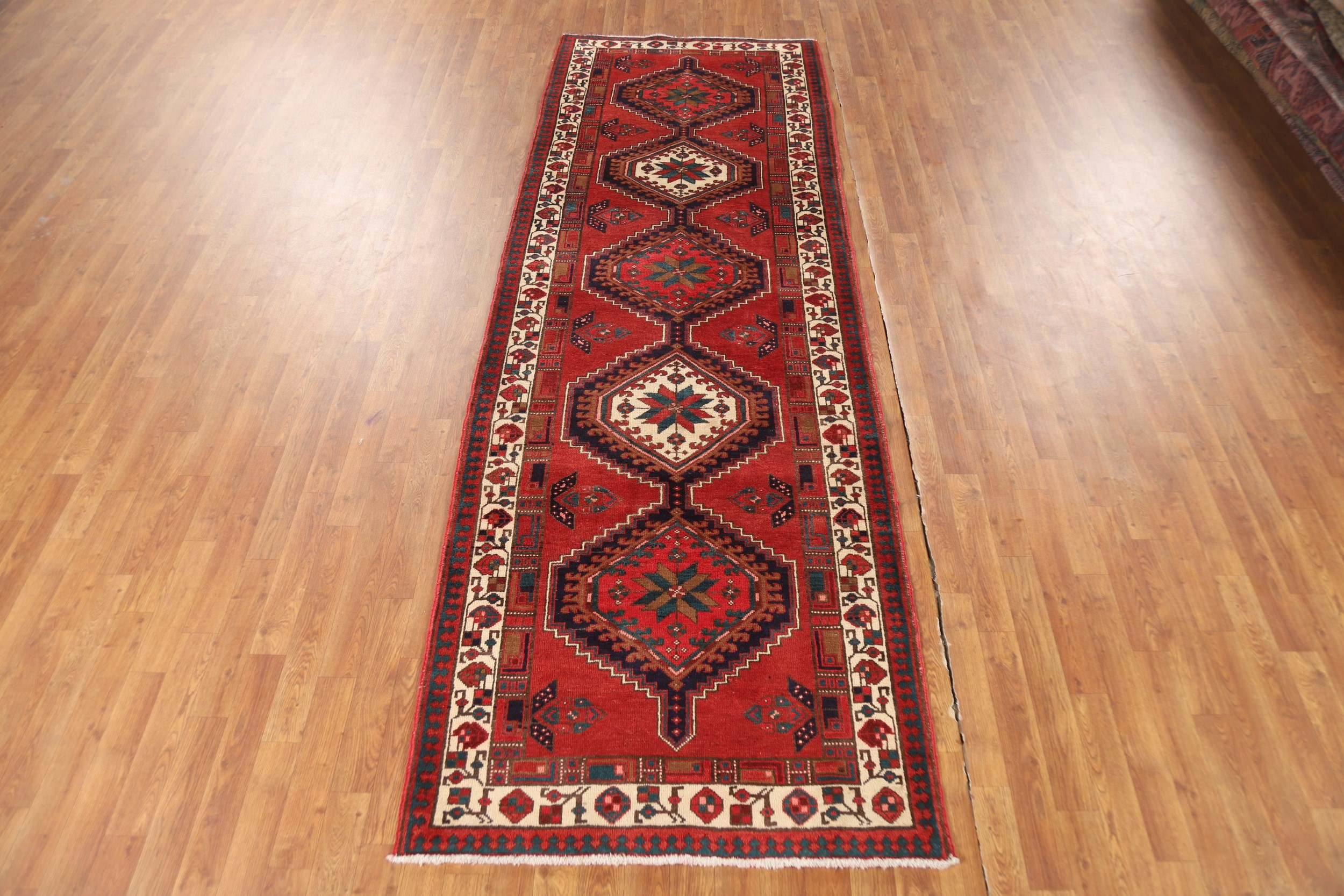 Vintage Geometric Runner Rug 4x11 Hand-knotted Wool Traditional Red Carpet