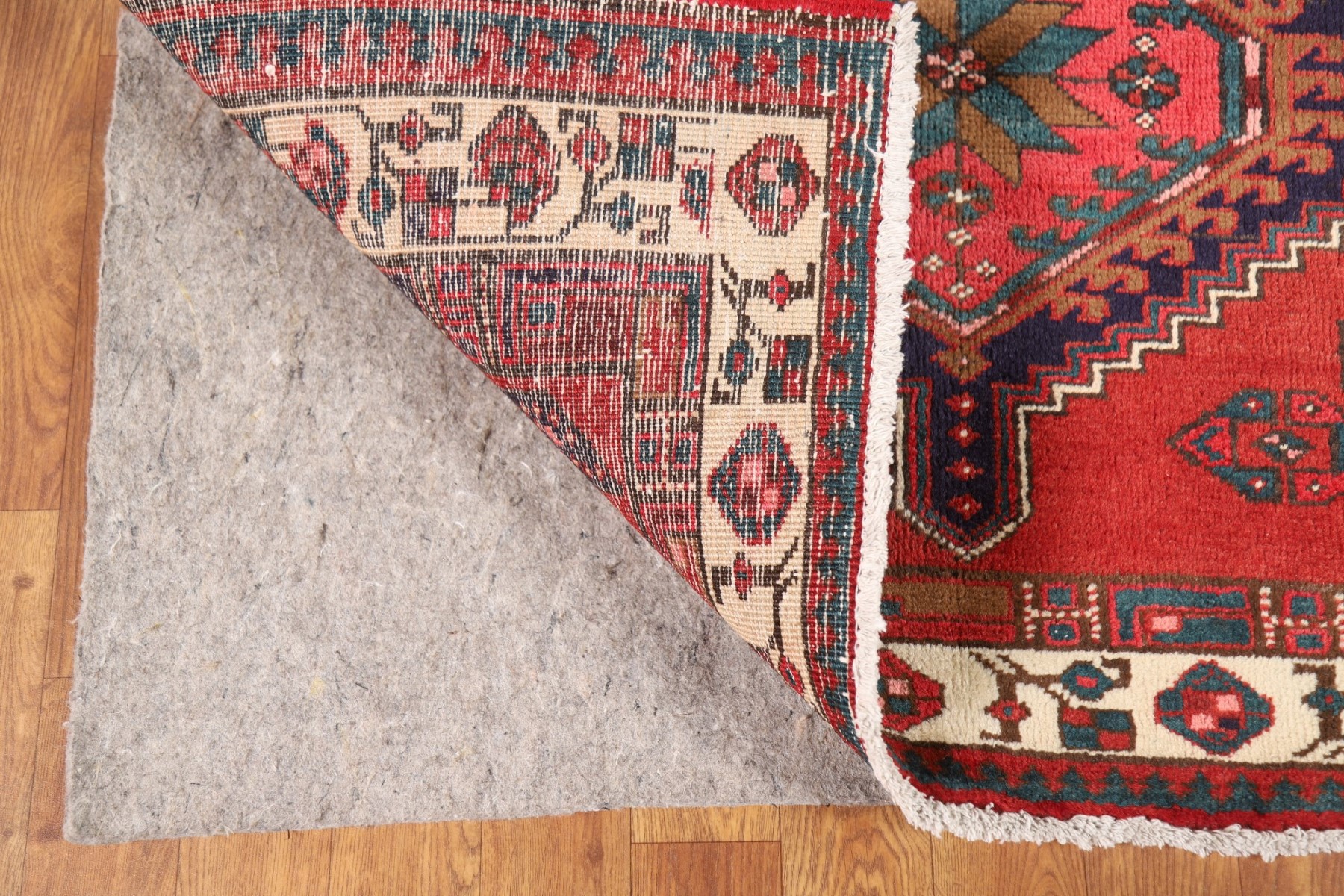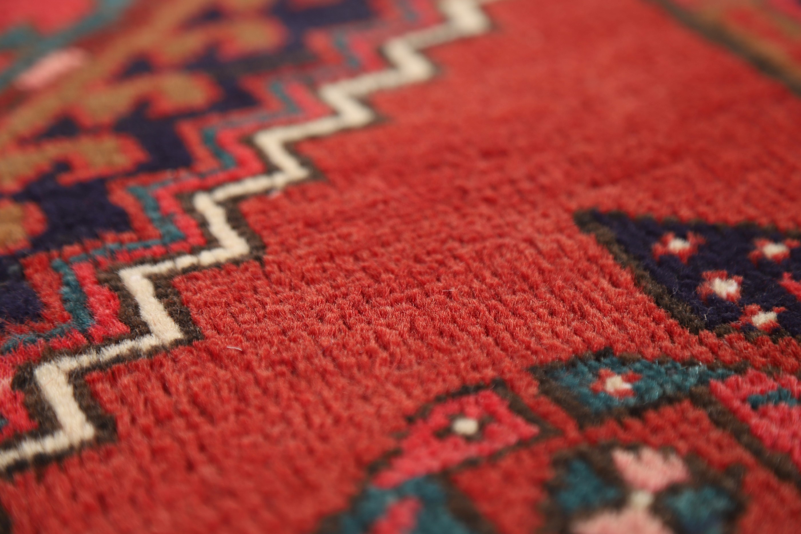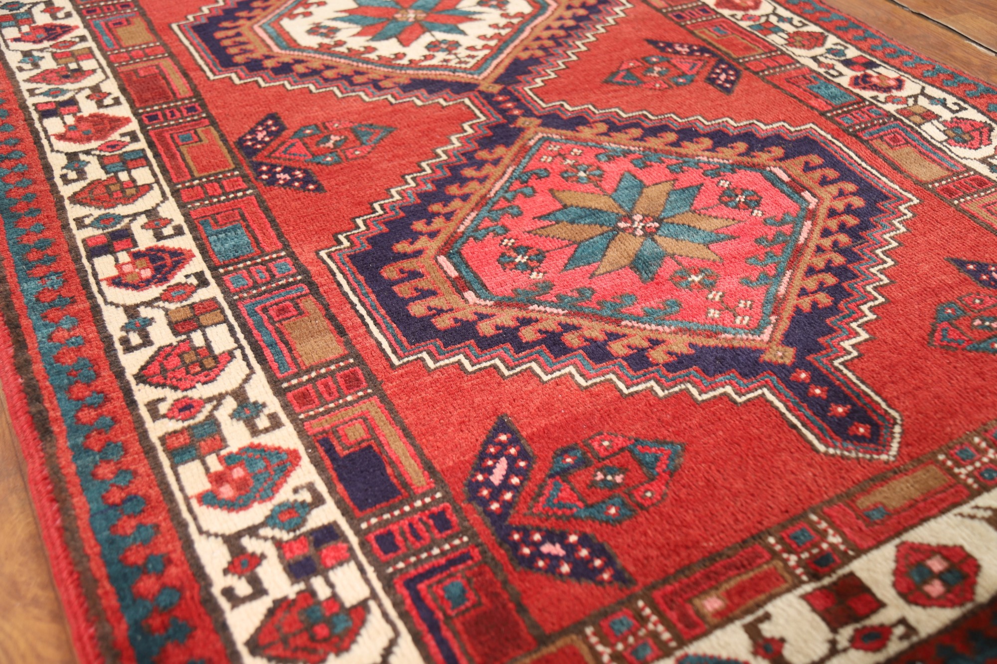 Vintage Geometric Runner Rug 4x11 Hand-knotted Wool Traditional Red Carpet