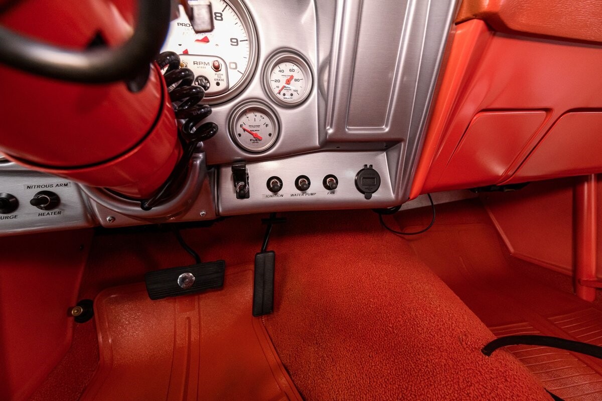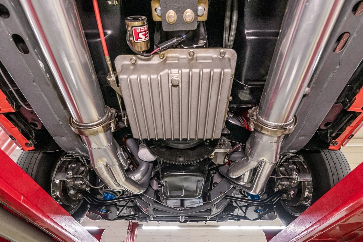 The rear wheel wells have been professionally mini-tubbed and look like factory. The coupe strikes a great stance on 750 Series Sander Engineering 15x10/15x4" polished aluminum wheels that mount 10.5" M/T street radials. – it is all top shelf.