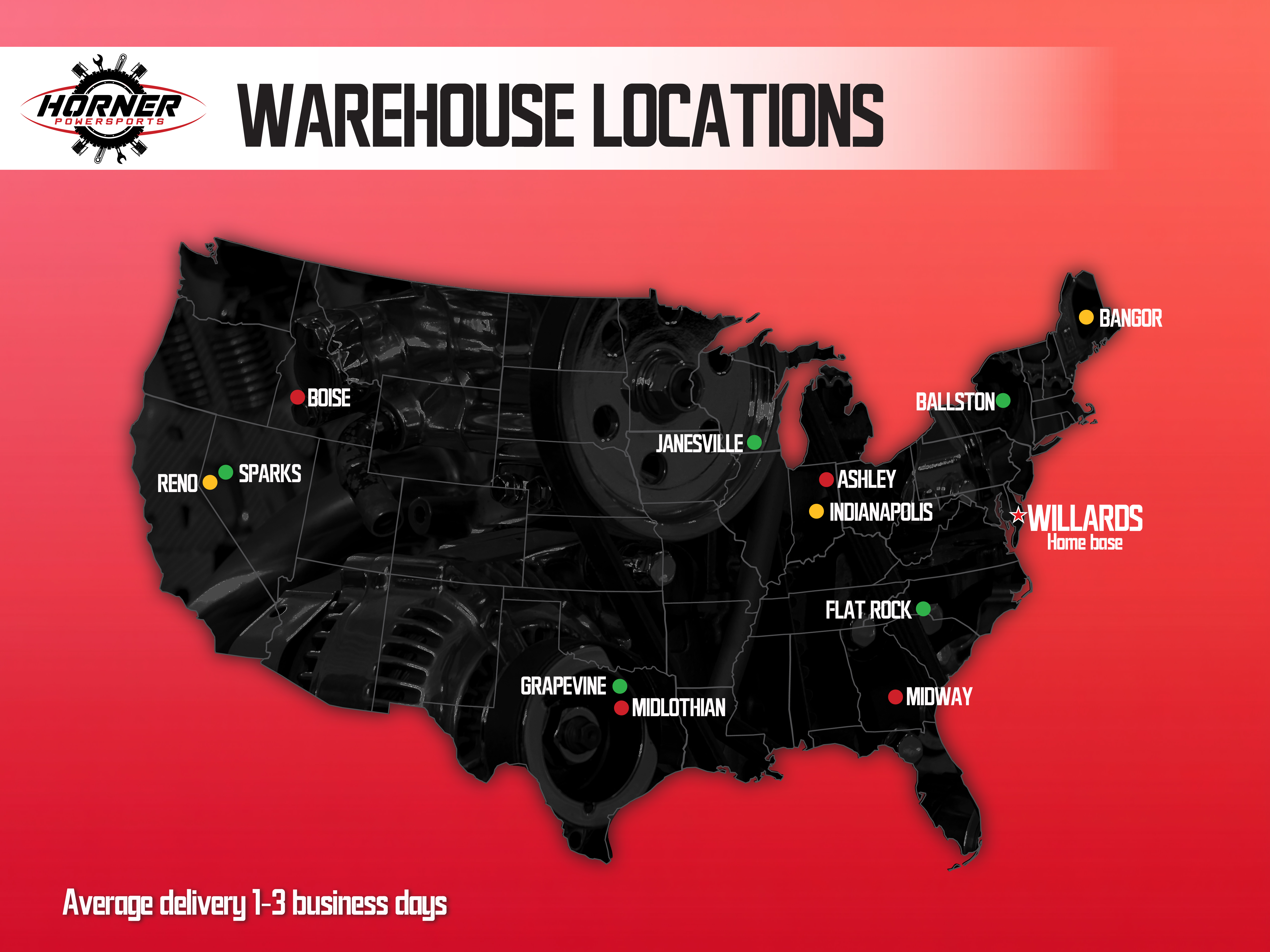 PaymentWe ship daily Monday through Friday. All new parts ship from the closet warehouse to your address and they typically arrive between 1-3 business days.