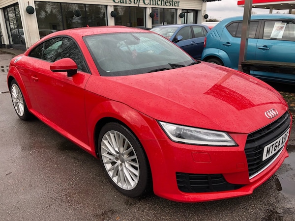 Here we have a desirable 2 owner late 2014 Audi TT 2.0 TDI Sport Ultra diesel 6 speed manual featured in Tango red metallic which has covered 78,000 miles. Serviced only by Audi main dealers at 10,000, 18,000, 25,000, 31,000, 43,000, 65,000 and 78,000 miles. Long MOT until January 2027 with no advisories. The car is ready to go for the next owner. Specification includes Technology Package featuring Audi Connect, Bang & Olufsen sound system, Super Sports seats in Fine Nappa leather, DAB radio, rear parking sensors, Heated front seats, LED interior lighting package, Electric lumbar support, Sat Nav, Front centre armrest, hill hold assist, airconditioning, Bi-Xenon headlights with ellipsoidal lenses, keyless start, bluetooth phone and audio, collision warning, remote central locking with 2 keys, day time running lights, electric windows, isofix, Single 12.3 inch multi-function display screen(s), sports multifunctional steering wheel, digital dash, flatfolding rear seats and 18 inch alloy wheels. Very economical to run with just £20 annual road tax and 67.2 mpg combined fuel consumption. Euro 6 engine so is ULEZ compliant. In good condition inside and out for the age and mileage; drives well. Overall if you are looking for a sporty, well specified coupe which is ULEZ compliant and economical to run this is well worth coming in to see. All of our cars come with a national parts and labour warranty. We also offer finance and a part exchange service. HPI checked and we do not charge admin fees. To find out more visit carsofchichester.co.uk or call us on .