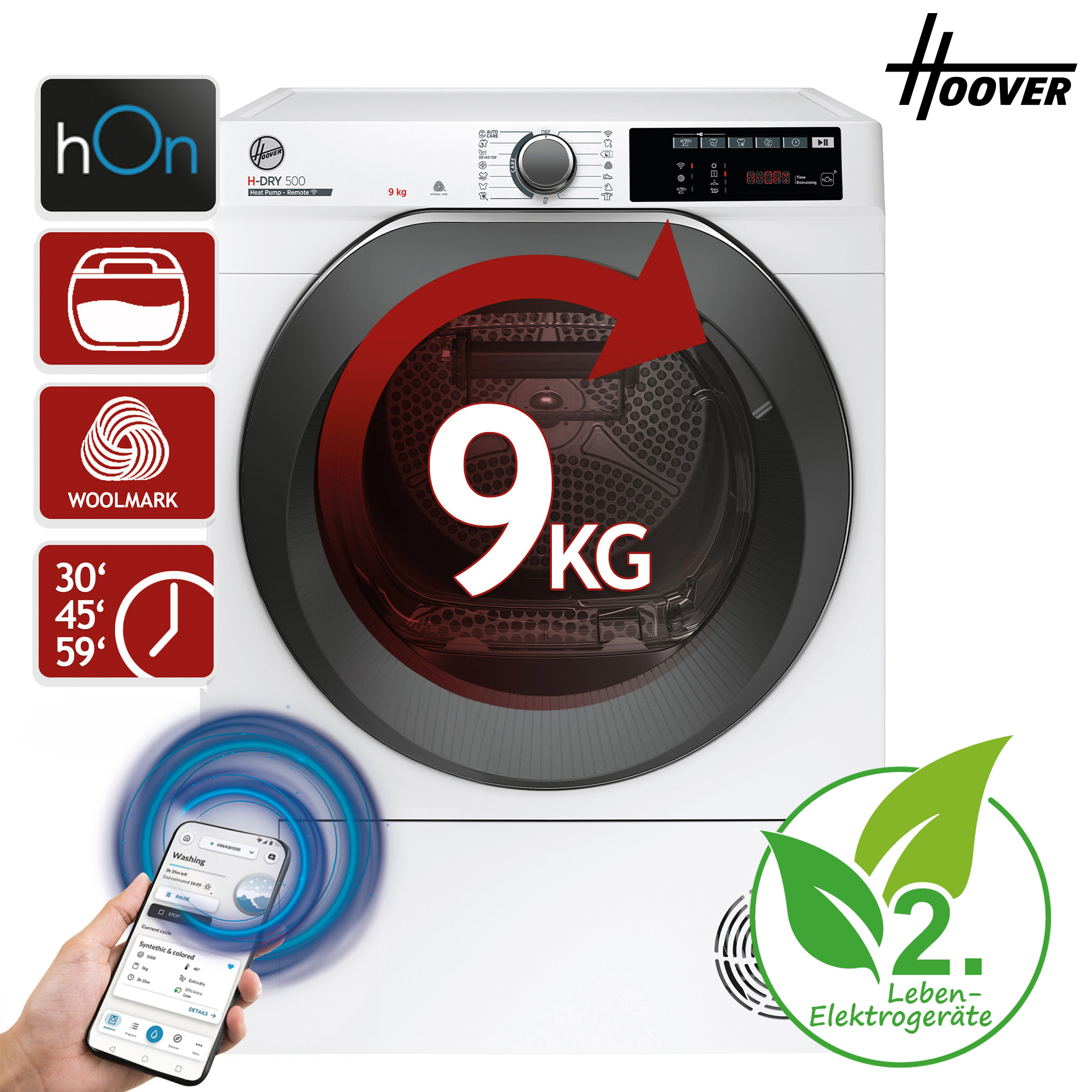 - Kurzwaschprogramme: 30/45/59 Minuten