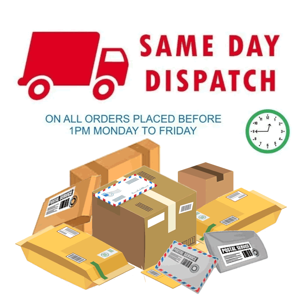 Wir versenden alle Artikel kostenlos an unsere Kunden in Großbritannien. Um unsere Preise so niedrig wie möglich zu halten, werden unsere Produkte per Royal Mail 2. Klasse verschickt, die über das Barcodesystem der Royal Mail verfolgt wird. Wir bieten auch Porto-Upgrades an, wenn Sie Ihren Artikel etwas schneller benötigen oder eine Lieferung außerhalb des Vereinigten Königreichs wünschen.