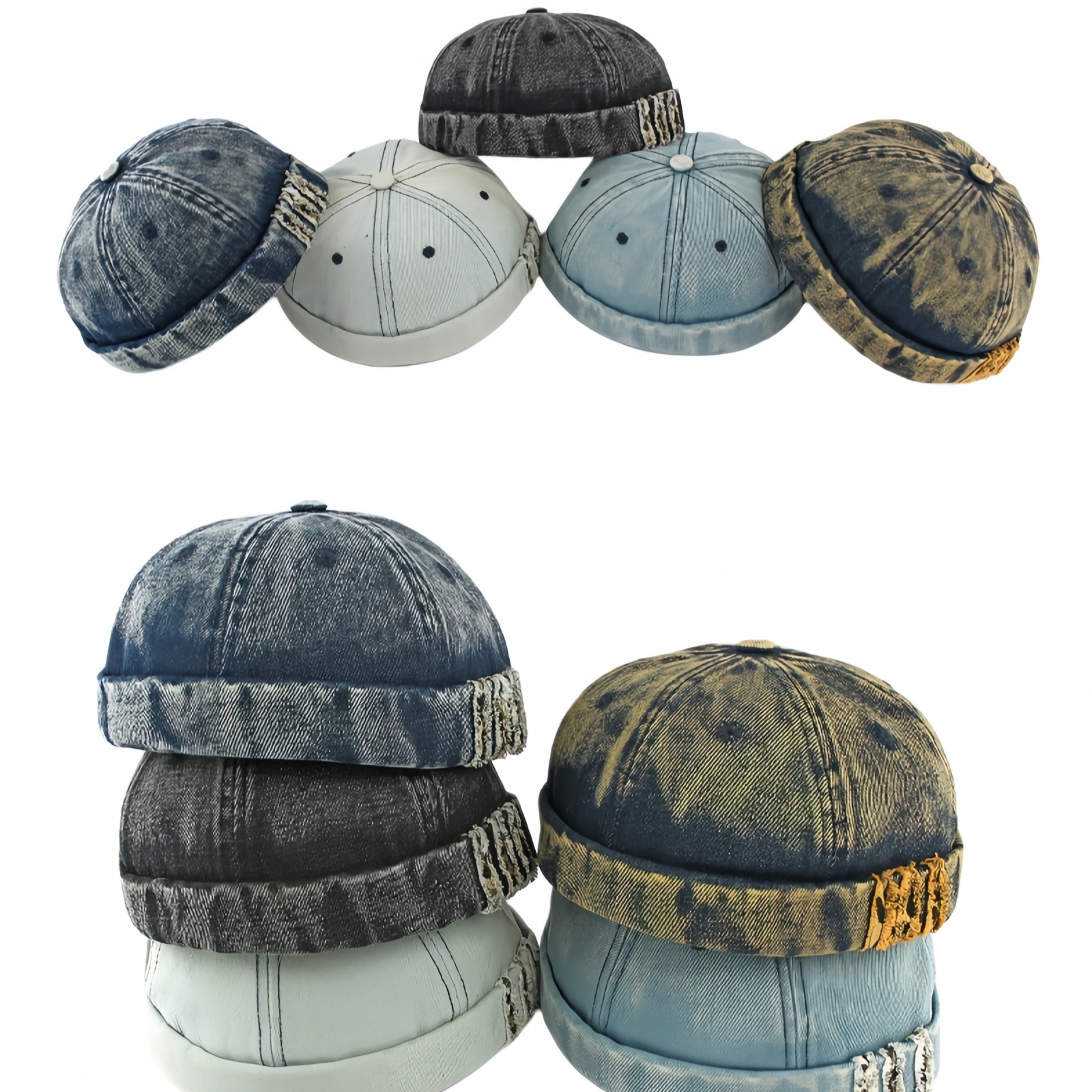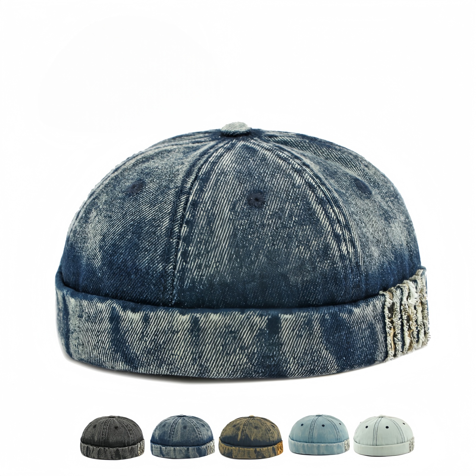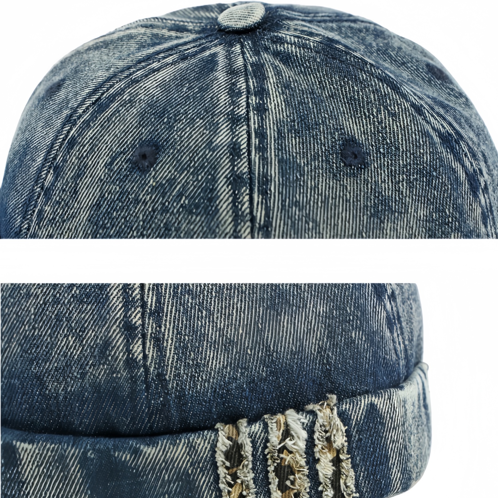 Vintage Washed Denim Brimless Hat for Men & Women Distressed Docker Cap Beanie