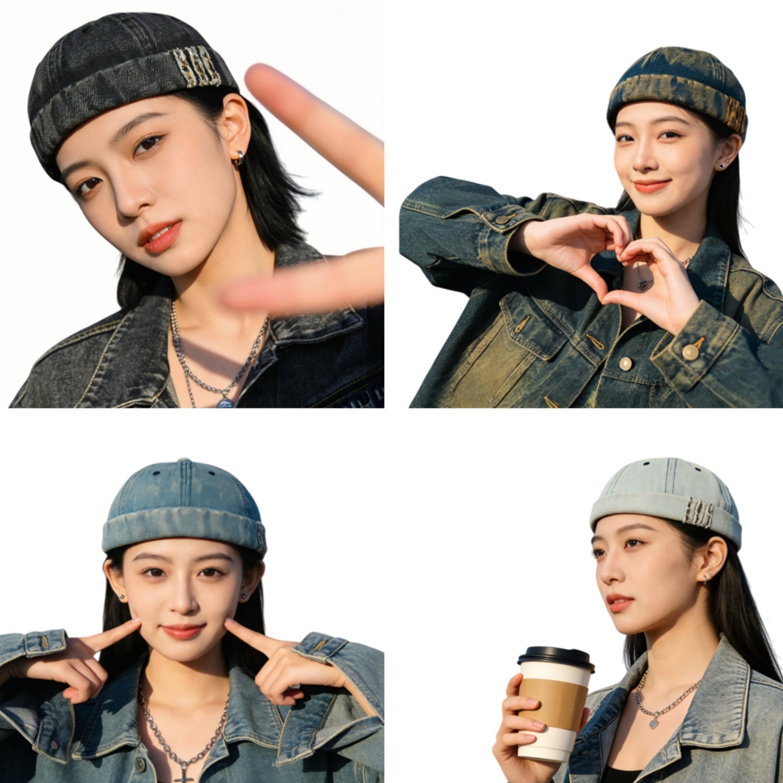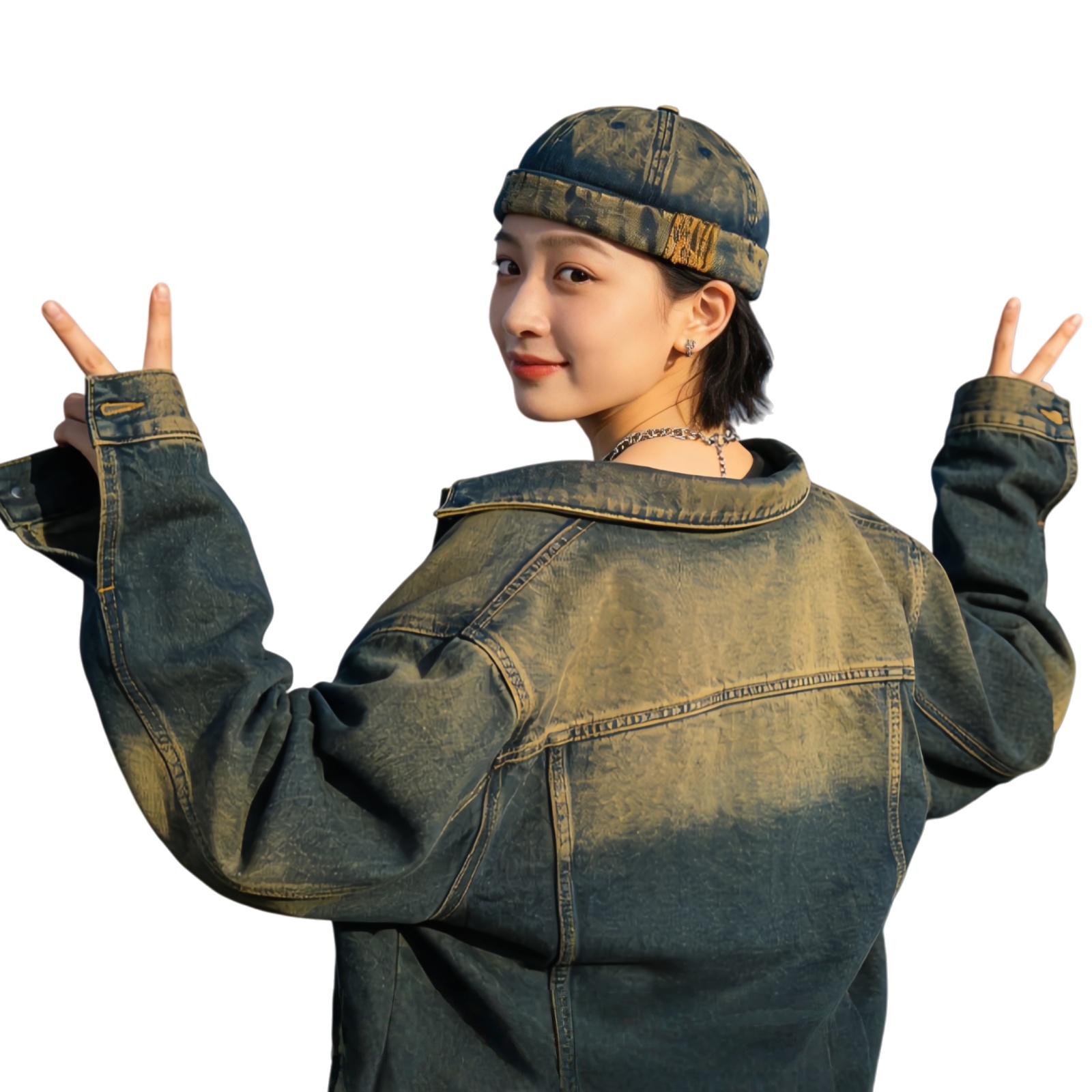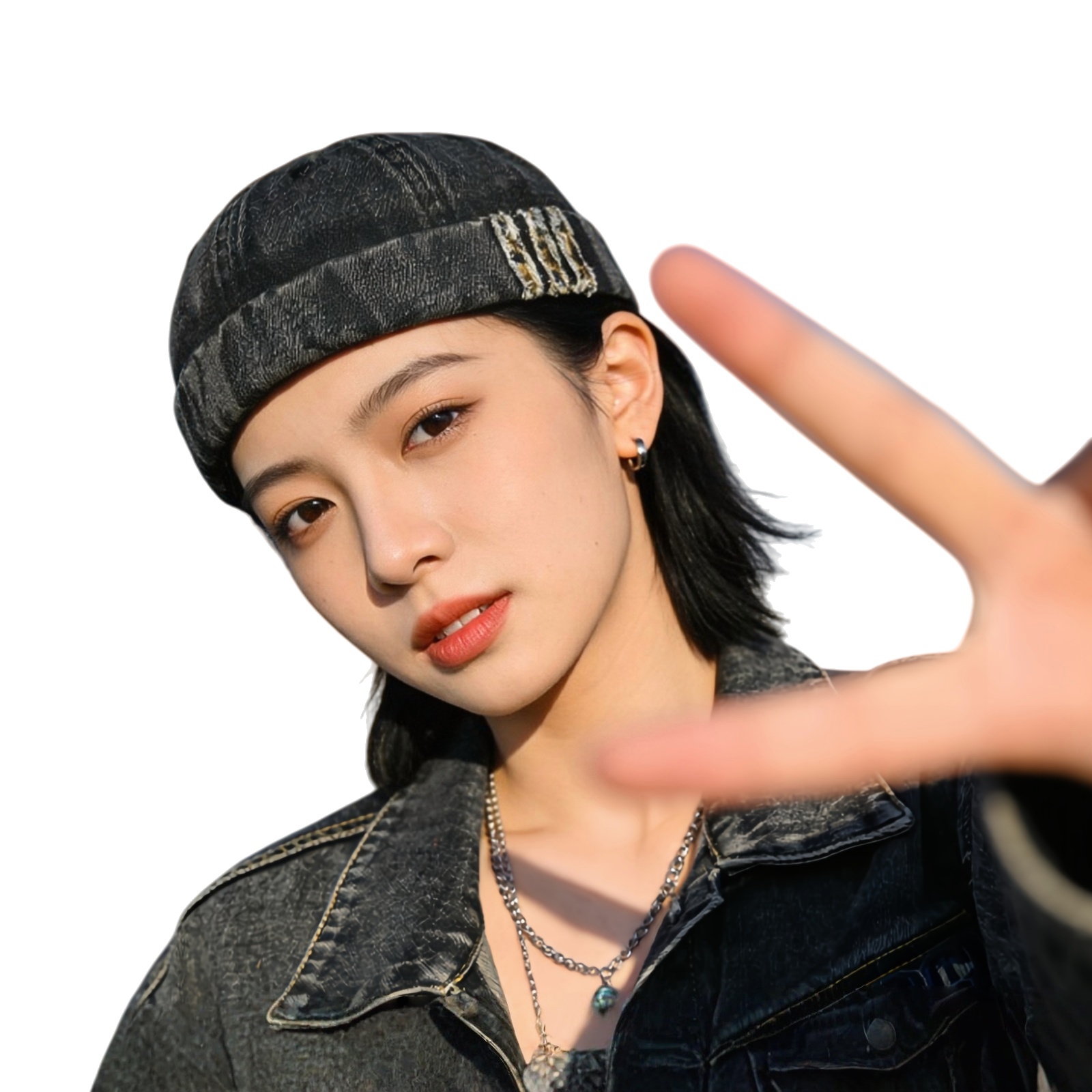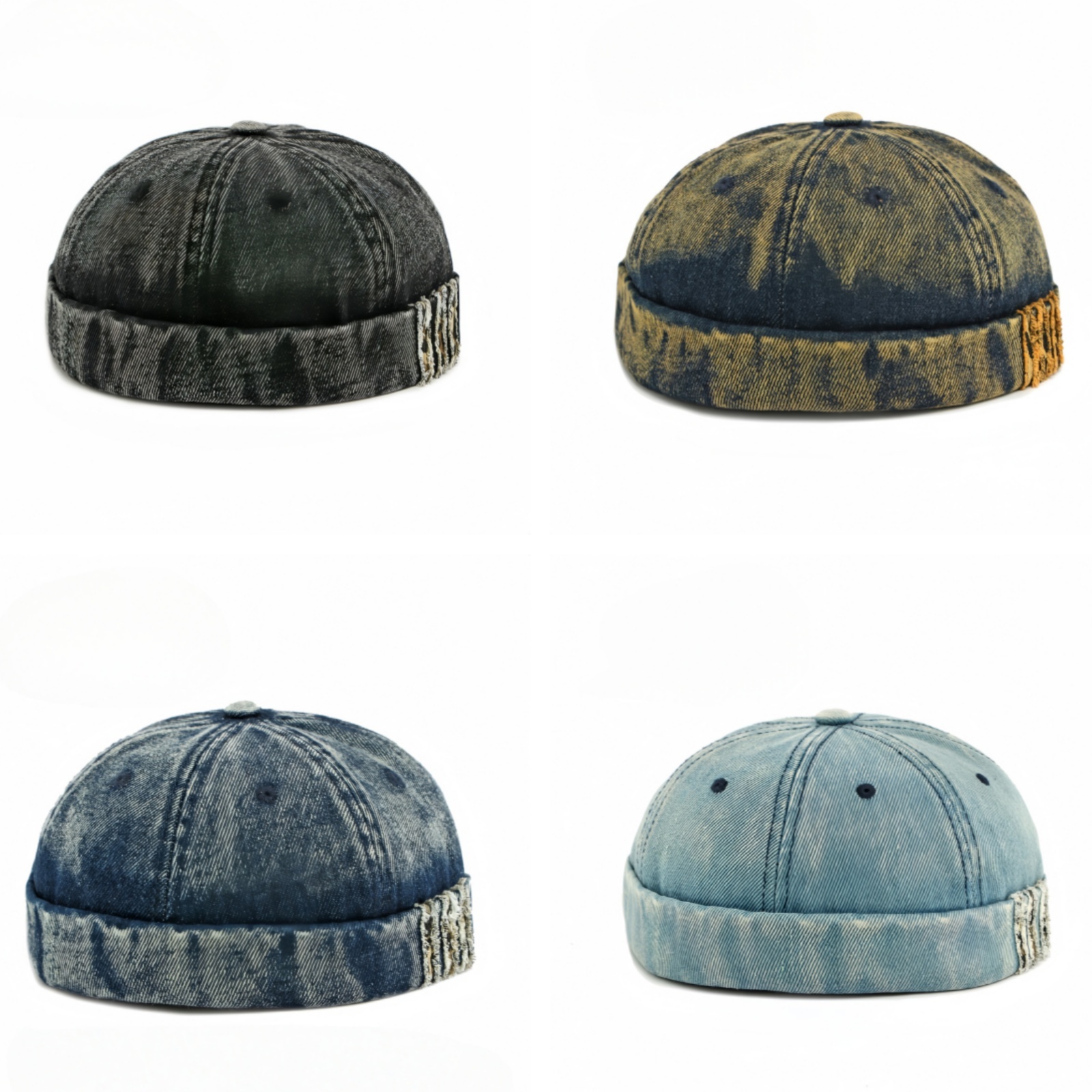 Vintage Washed Denim Brimless Hat for Men & Women Distressed Docker Cap Beanie