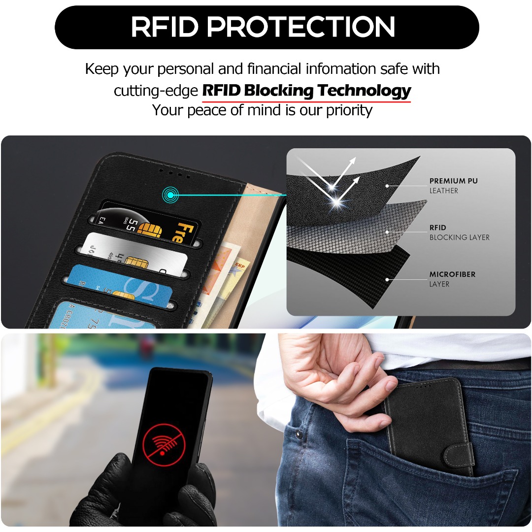 • Introducing our Wallet Flip Case with RFID Blocking technology, the ultimate solution for keeping your phone and personal information secure. This sleek and versatile case offers much more than just protection – it combines style, convenience, and peace of mind in one compact package.