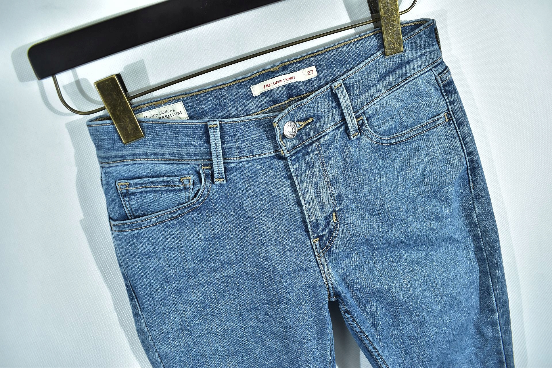 Condizione: Usato (Valutazione 5/6) Dimensioni: W27 L30 Dimensioni Larghezza vita: 35 cm Lunghezza totale: 97 cm Larghezza fondo gamba: 11,5 cm Composizione: 85% Cotone 9% Poliestere 6% Elastam