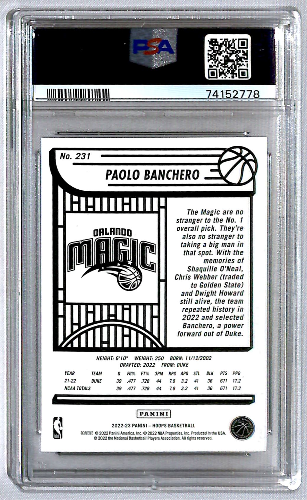 | Paolo Banchero 2022-23 Panini Hoops Rookie #231 PSA 9 Orlando Magic | ||||||||||||||||||||
