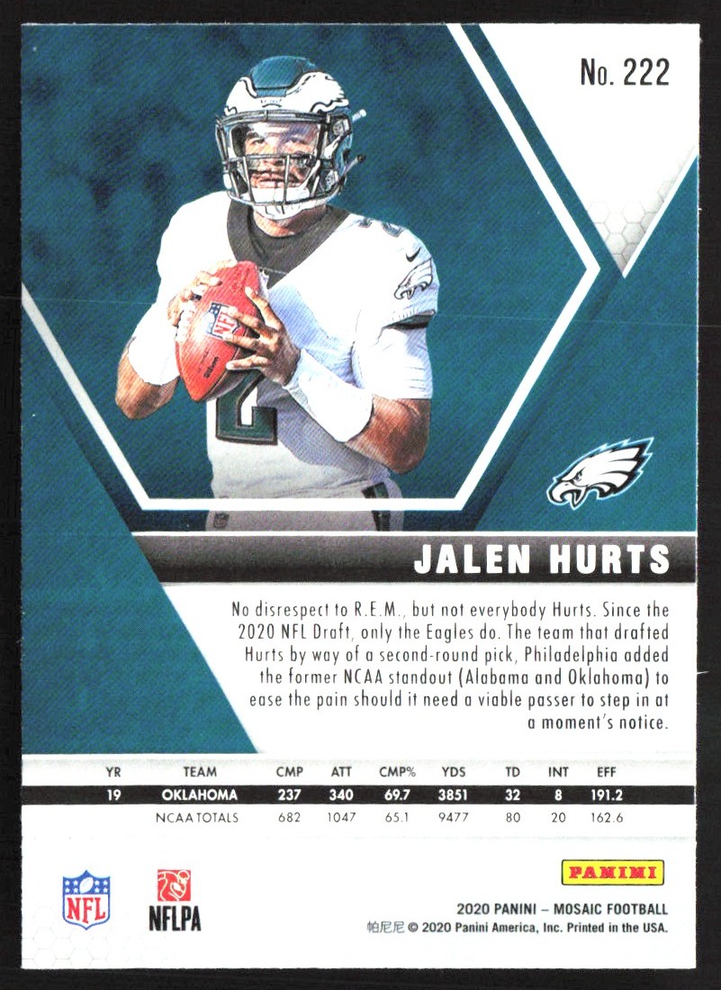 | 2020 Panini Mosaic Jalen Hurts Rookie #222 ES6-1 |