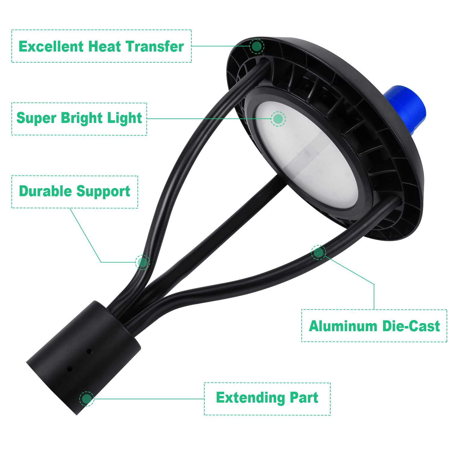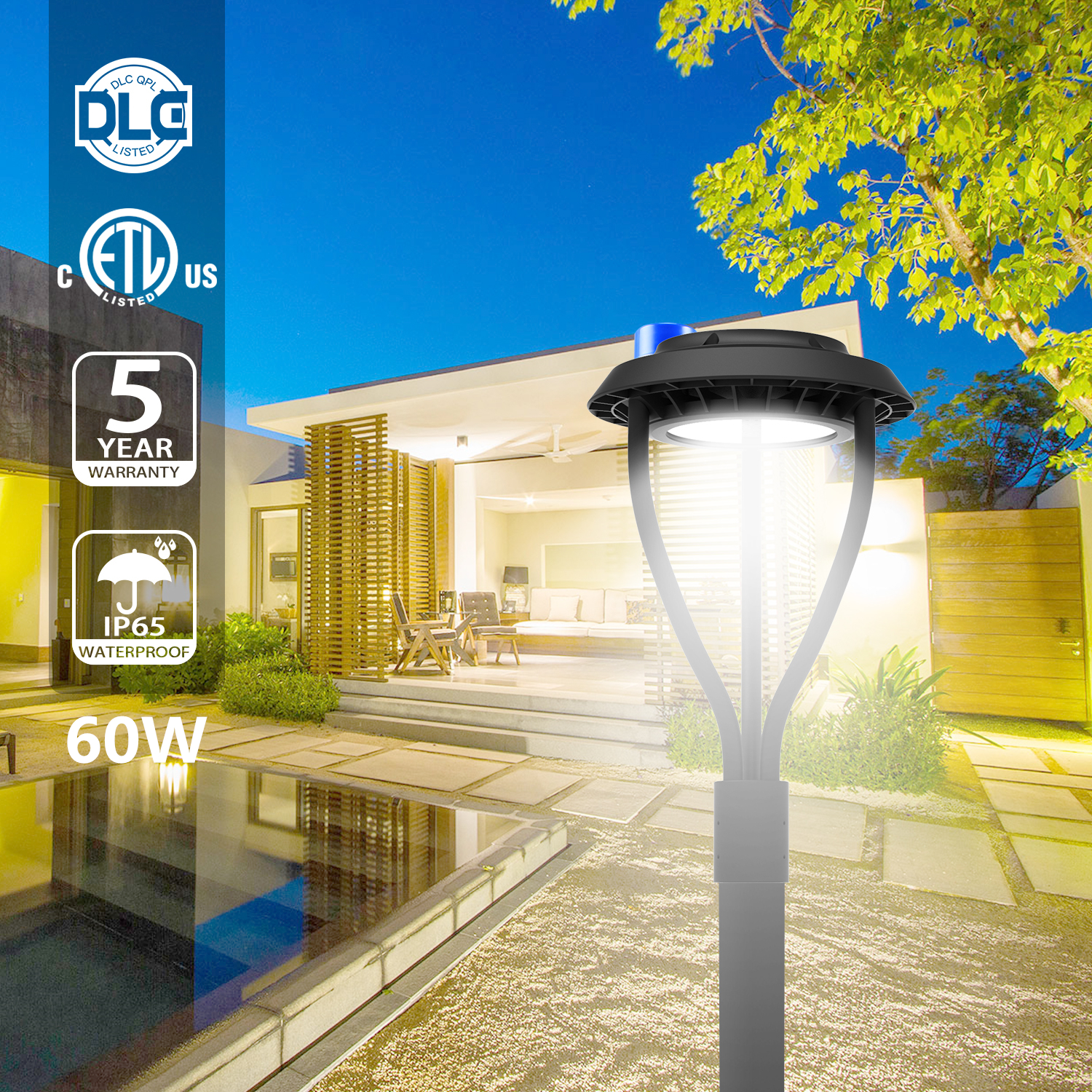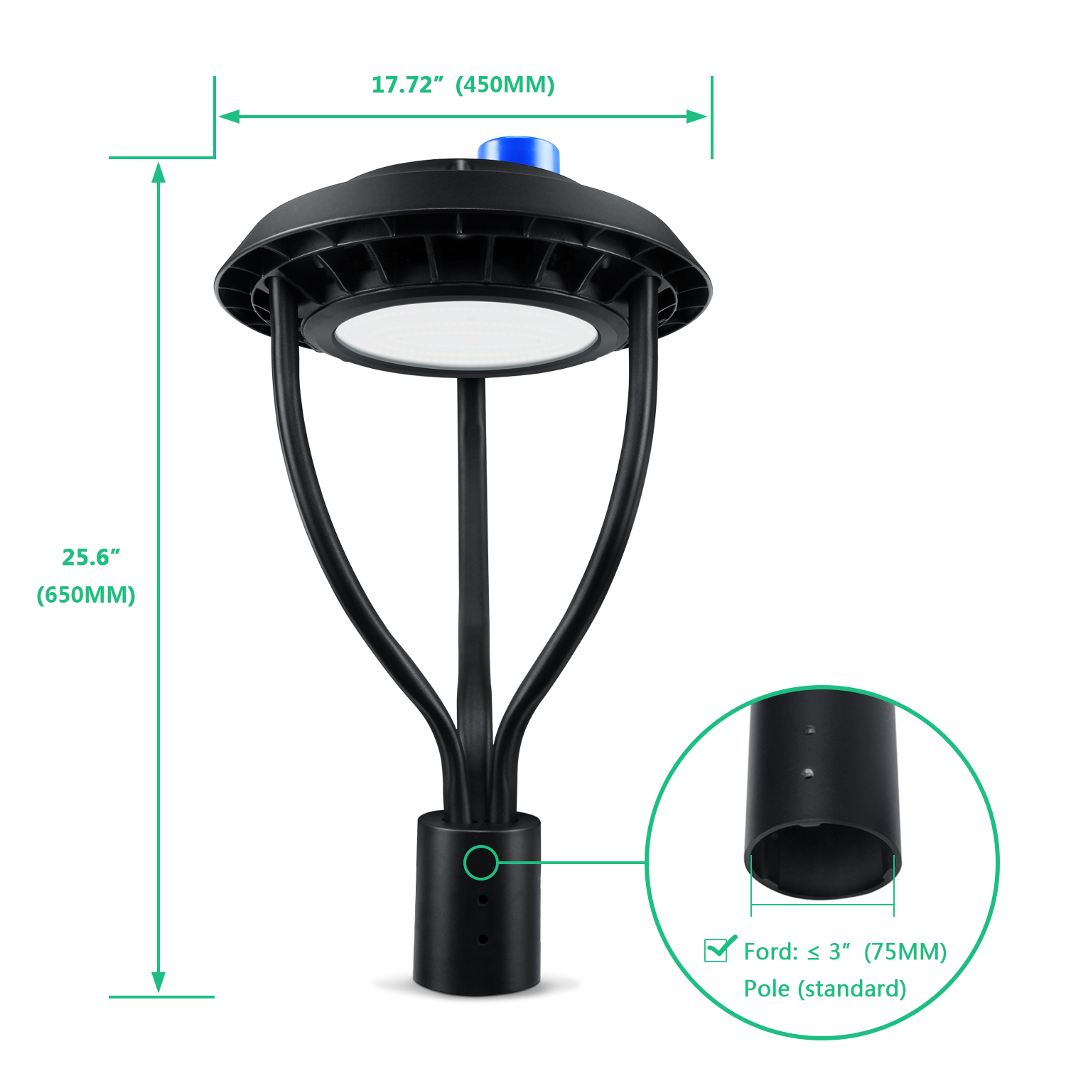 High Heat Dissipation & Durable: DLC/ETL Listed post top light with protective glass cover and aluminum