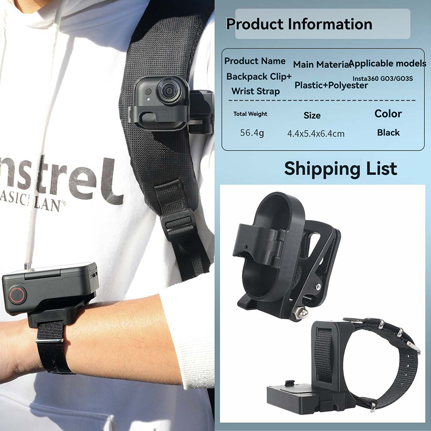 Backpack Collar Clip Supports horizontal and vertical shooting Thumb Camera Accessories for Insta360 Go3S