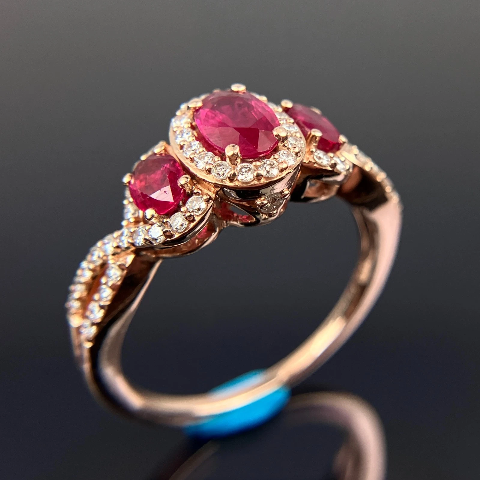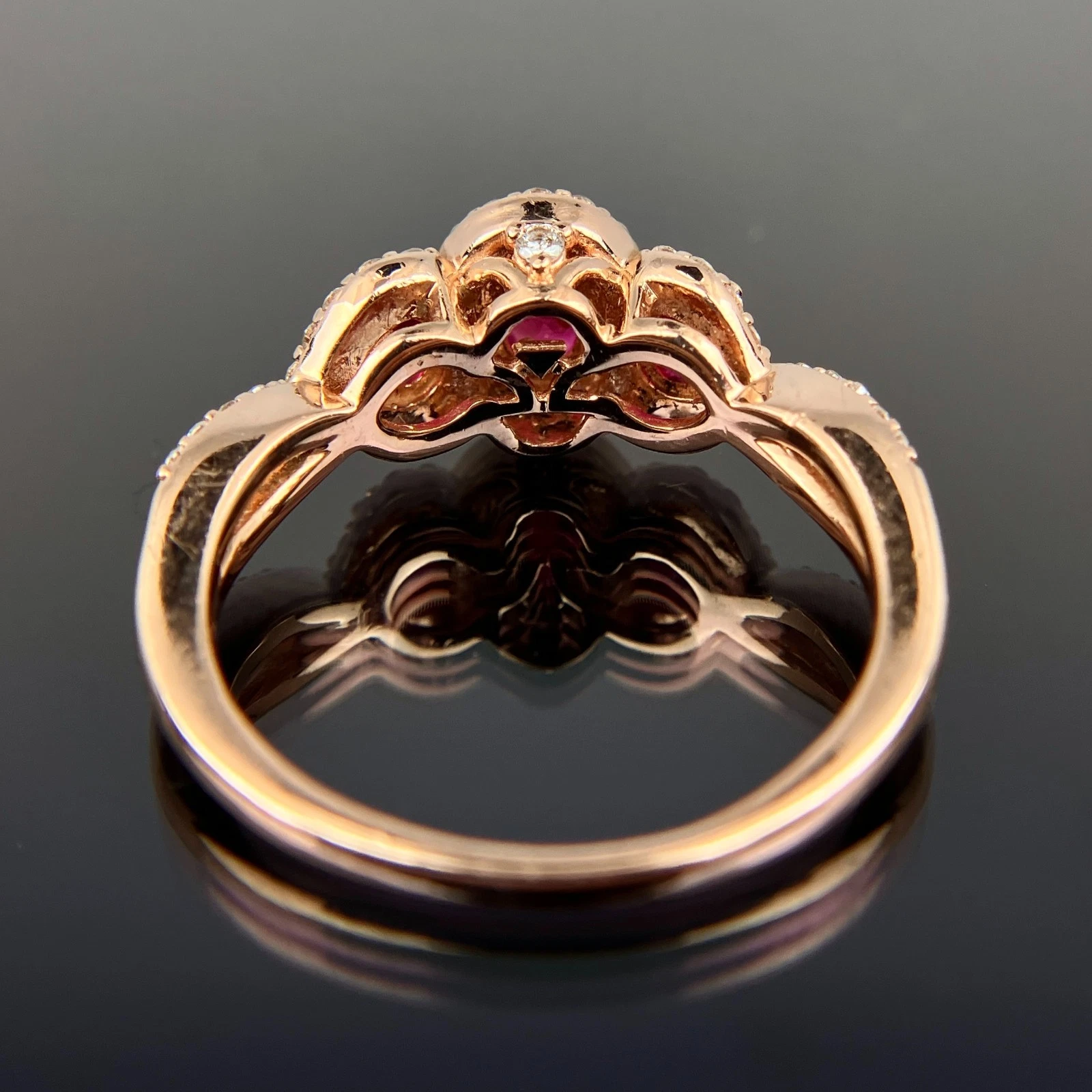 Le Vian 14k Rose Gold Ruby & Diamond Three-Stone Halo Ring Size 6.5, 3.68 Grams