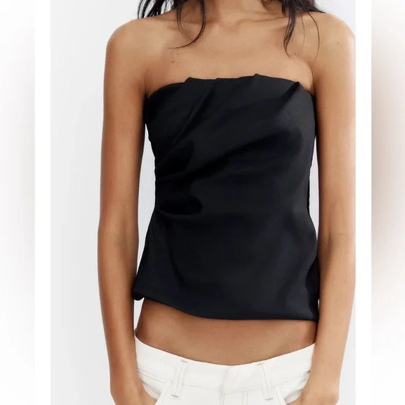 Zara Womens STRETCH BANDEAU TOP Black size Small