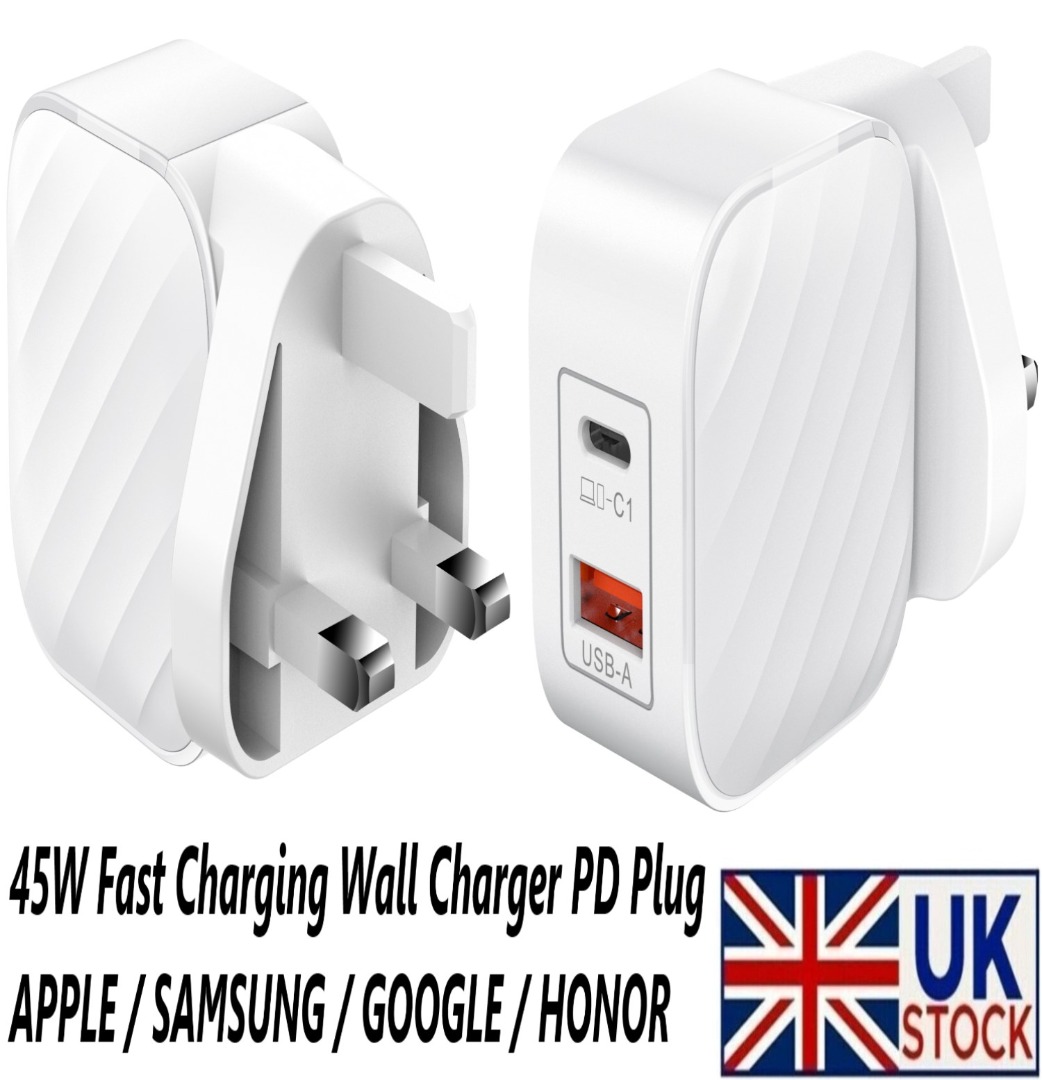 CARATTERISTICHE SPECIALI: - Ricarica rapida, Leggero, Approvato CE, USB-C, Tipo C, Finitura elegante, Design sottile e compatto, Ricarica rapida, Ricarica rapida, Doppia USB, QC 3.0, design del circuito AI (intelligenza artificiale), Ricarica rapida 3.0 da 45 W, doppia presa USB-A e USB-C, PD Plus, adattatore di alimentazione, caricatore da muro, supporto a parete, presa UK