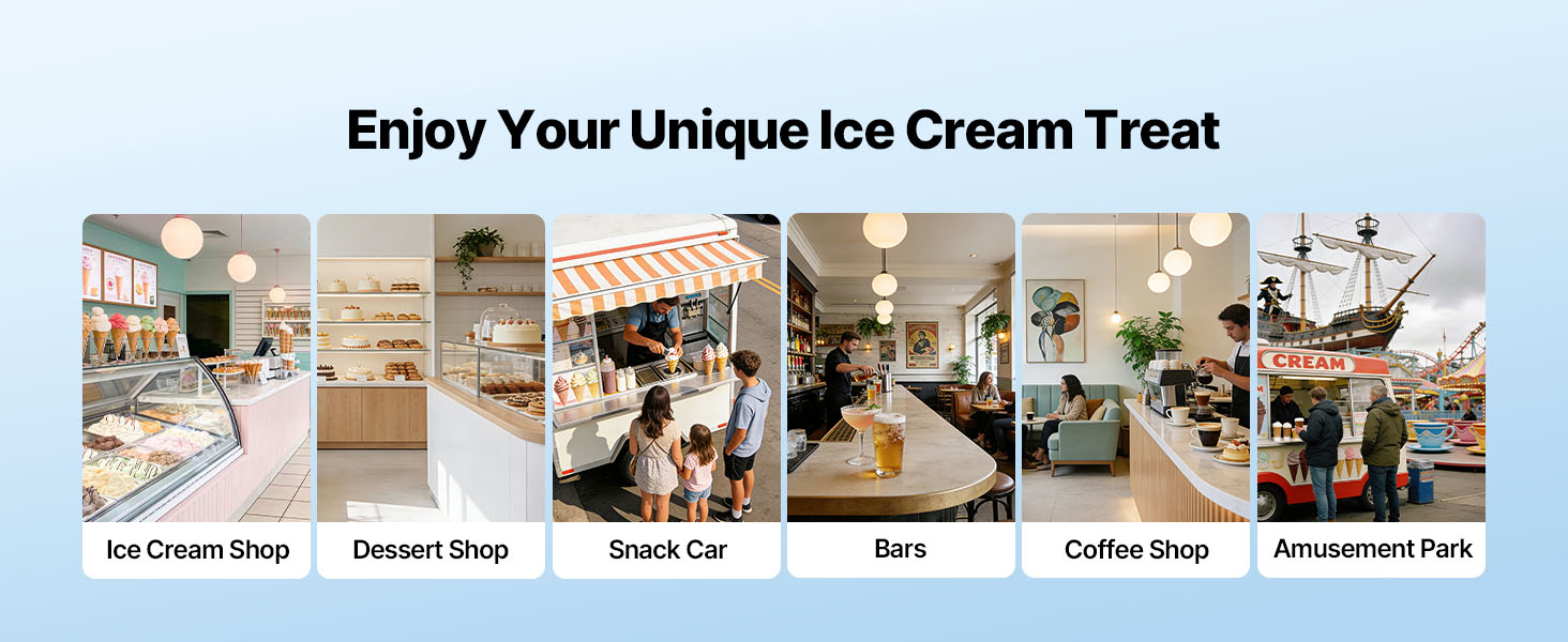 - Durable & Reliable: Made from high-quality stainless steel, this ice cream maker delivers rust and corrosion resistance, easy cleaning, and durability while meeting food safety standards. Ideal for making cones, waffles, ice cream cakes, and more - a great addition to ice cream shops, cafes, beverage bars