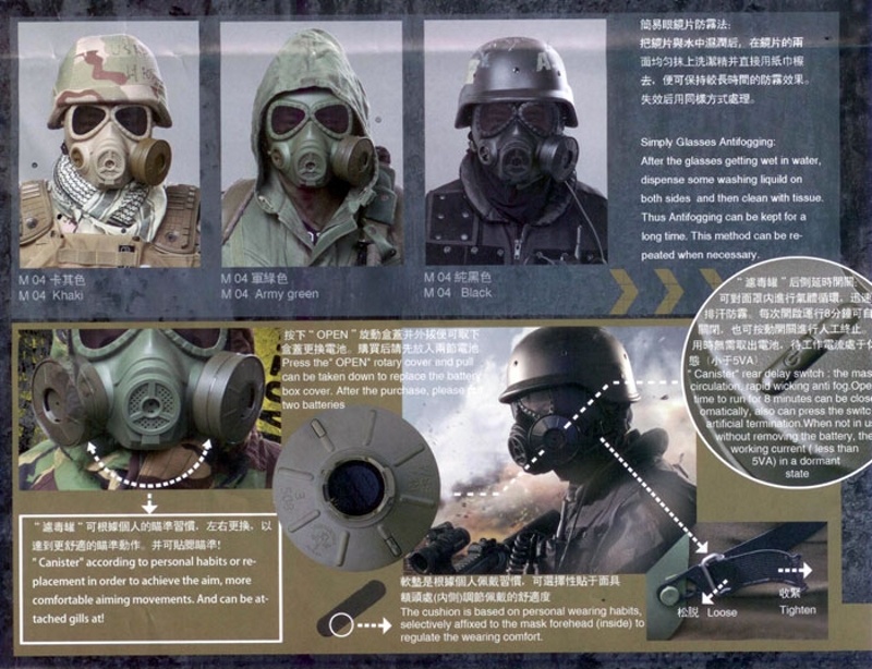 Note: The M04 model gas mask is generally used during nuclear and biological warfare situations. This is non-functioning dummy gas mask that does not protect you from harmful gases, viruses or nuclear radiation, it is purely for recreational use.