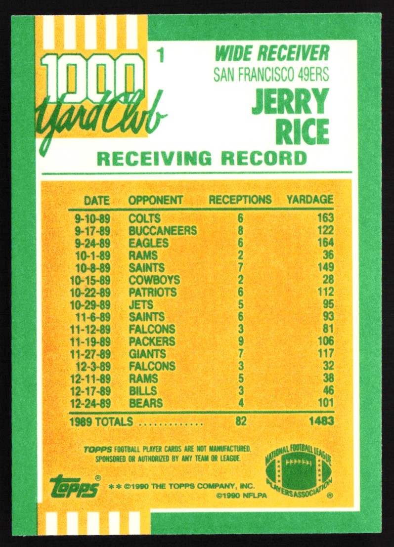| 1990 Topps 1000 Yard Club Jerry Rice #1 GS1 |